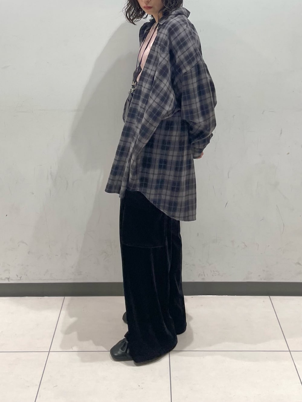 ベロアカーゴパンツは裾が絞れて154cmの私もストレスフリーで履けます。