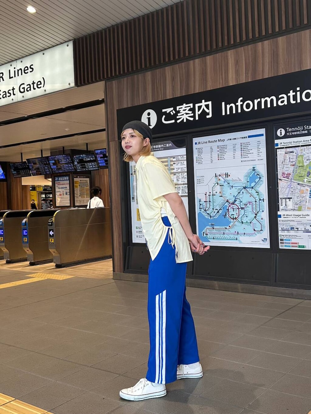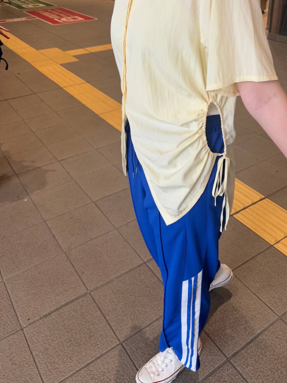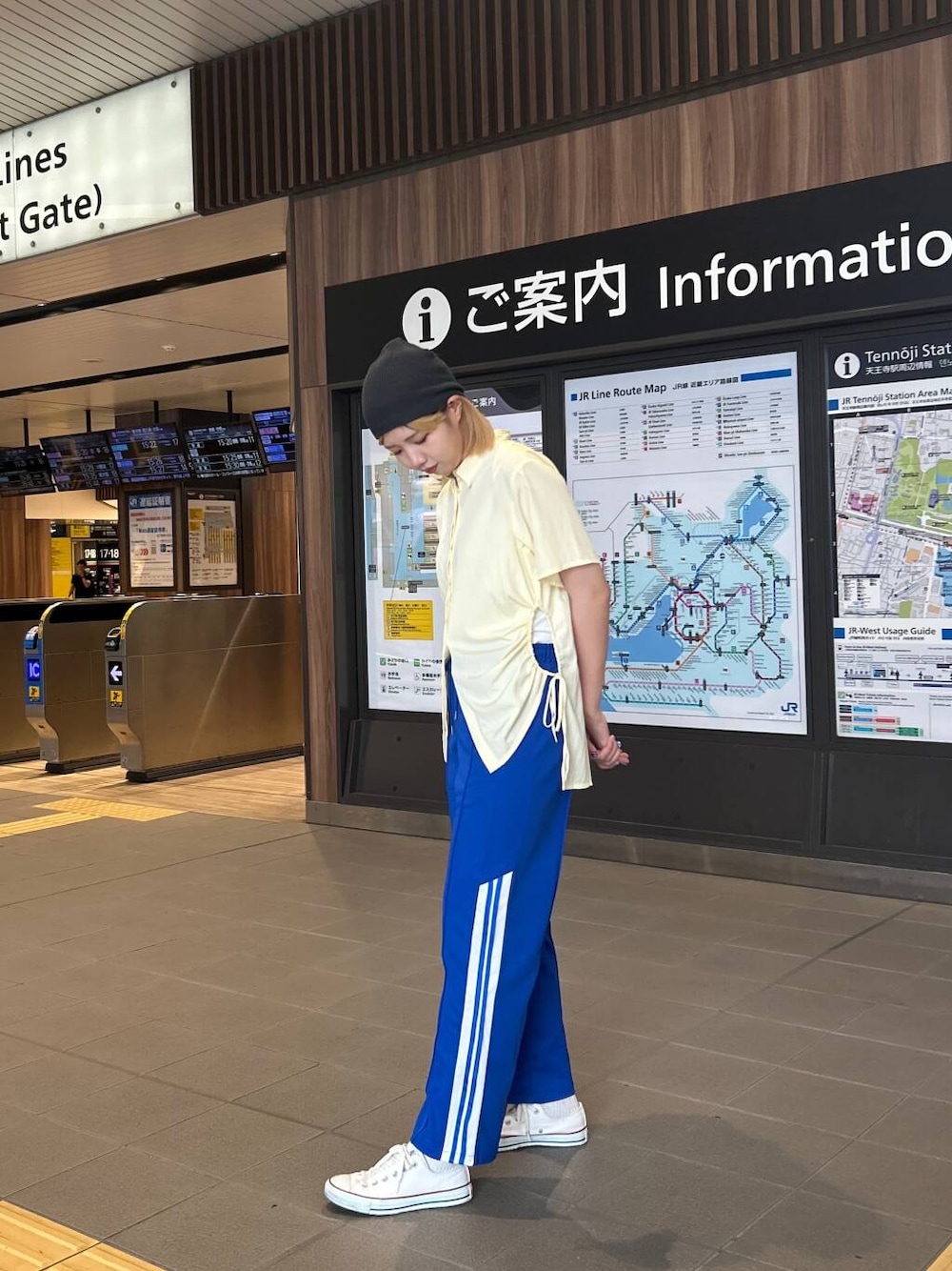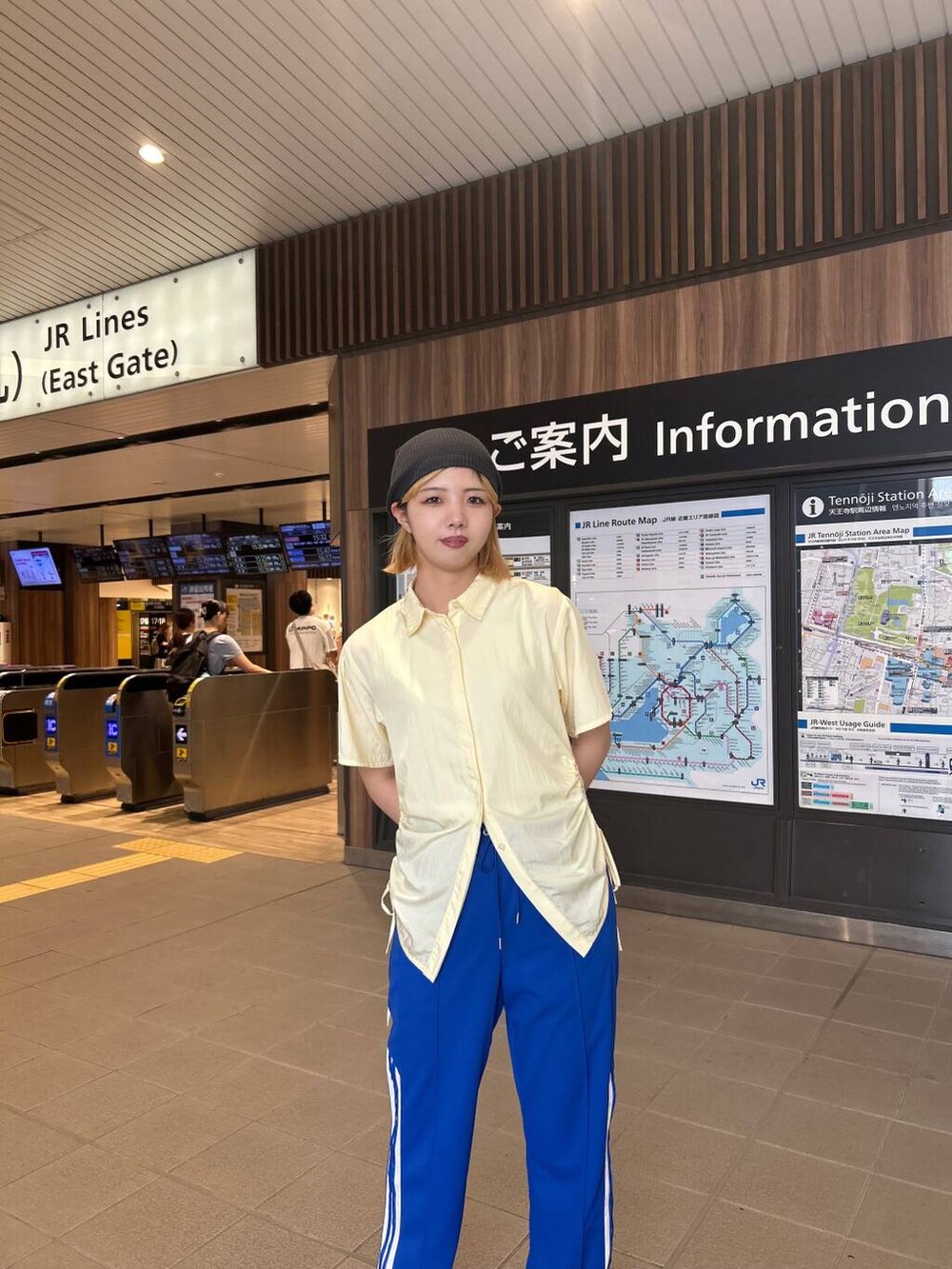 シャツの優しいイエローとパンツの鮮やかなブルーがとっても可愛いコーデになりました!