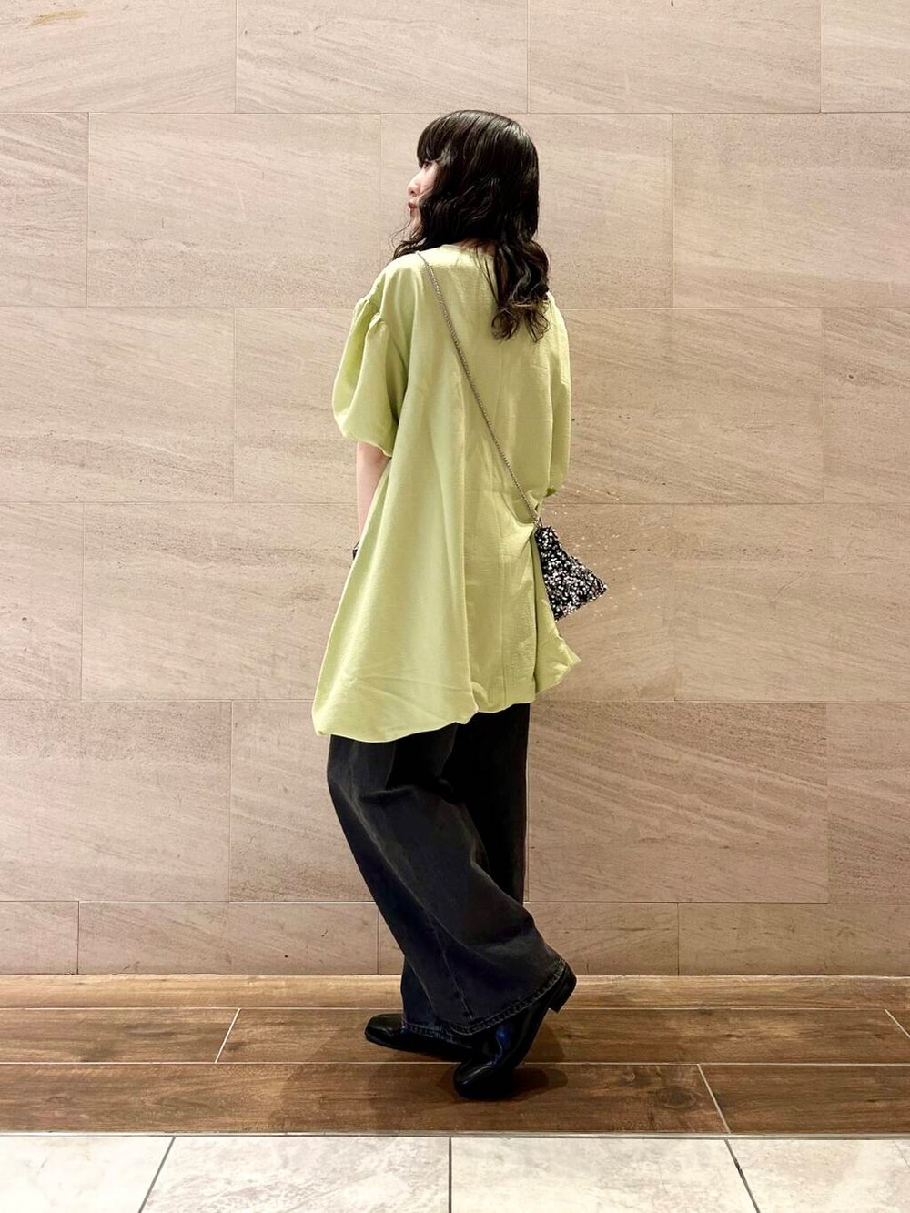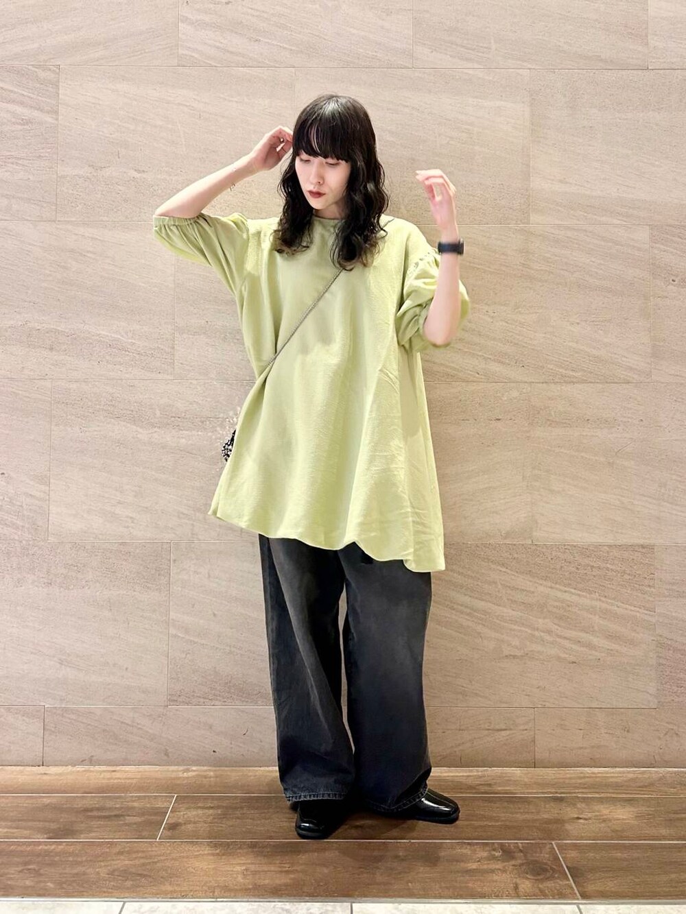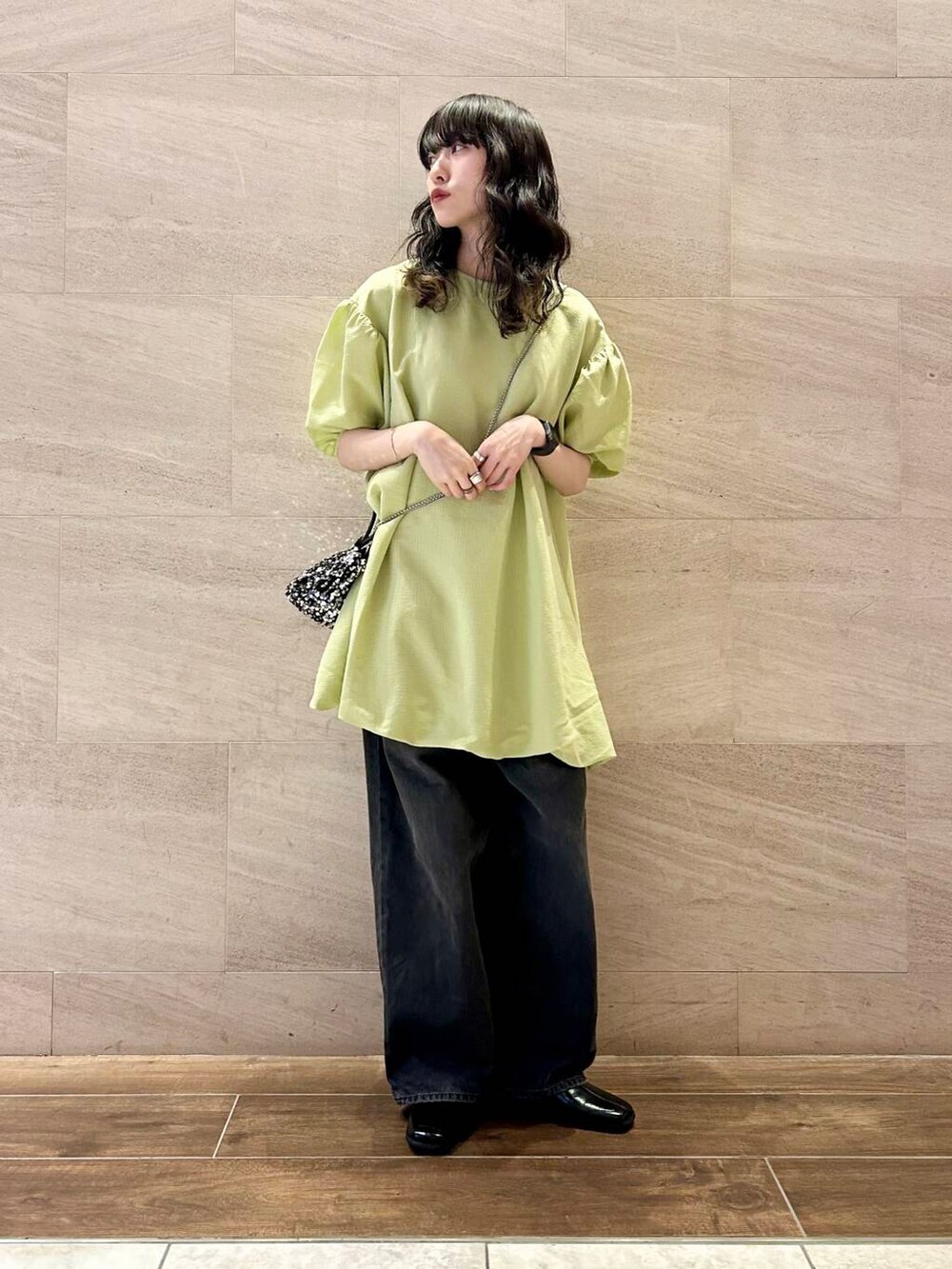 バルーンシルエットが可愛いワンピースは、ショートパンツと合わせても◎