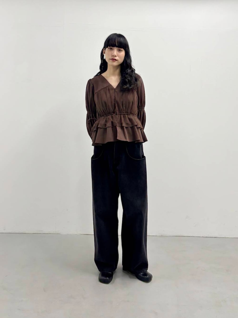 ブラウスは、チュールドッキングですが、Vネックで甘過ぎず大人っぽく着れるアイテムです!