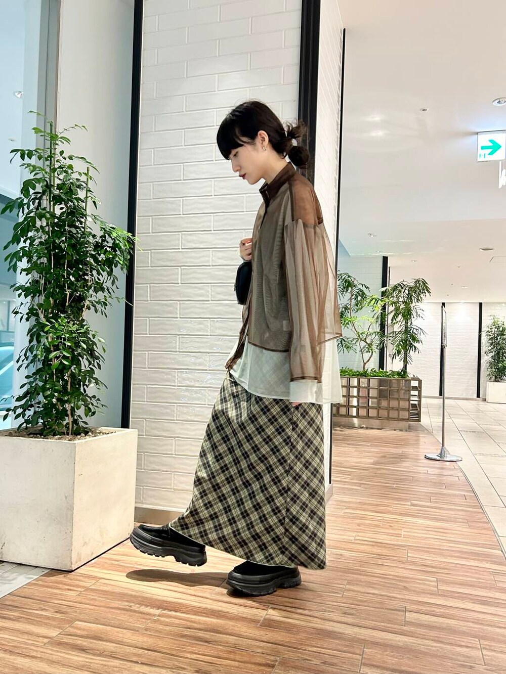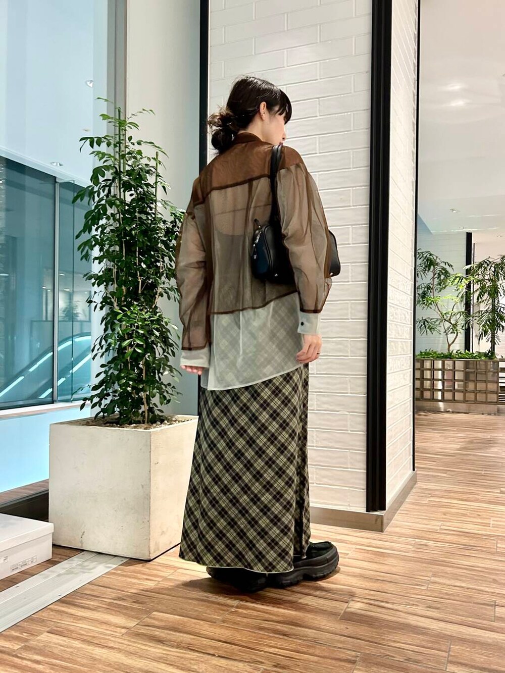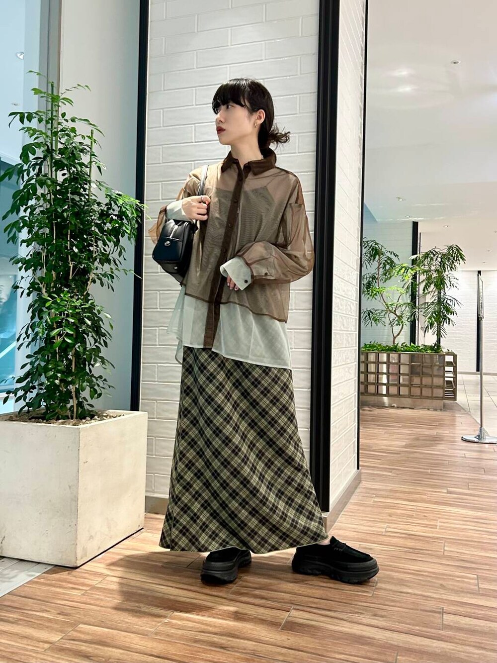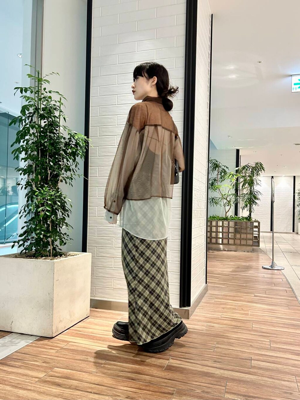 レイヤードスタイルが可愛いシアーシャツは、インナーにTシャツやタートルネックを合わせても◎
