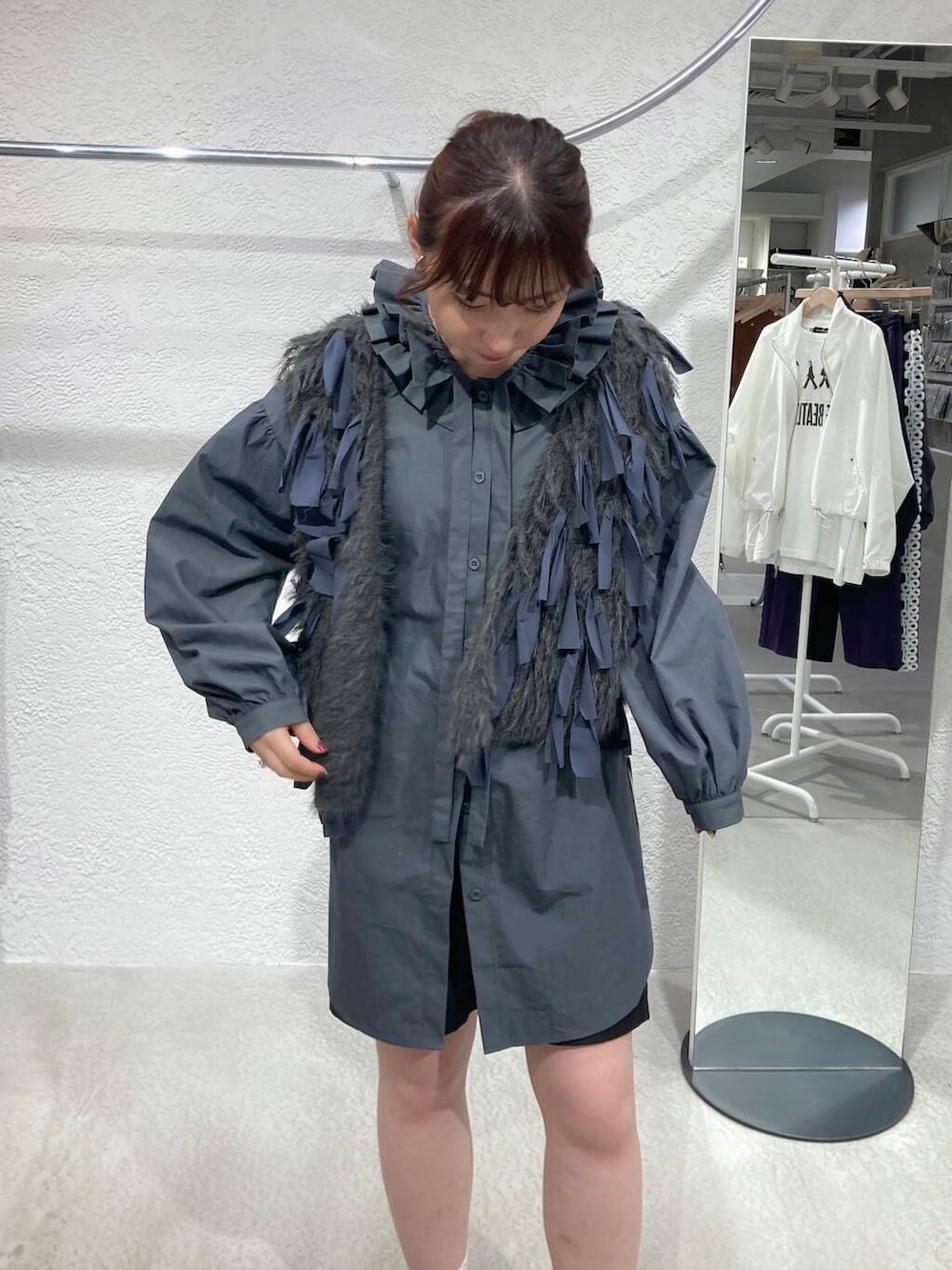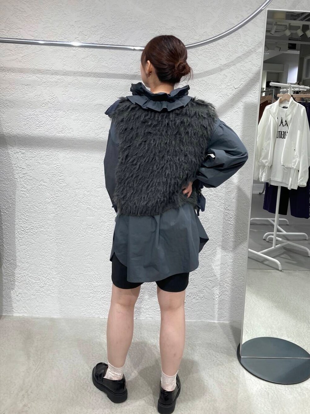 触り心地がふわふわもちもちなベストを重ねて上半身にインパクトを出しました✨