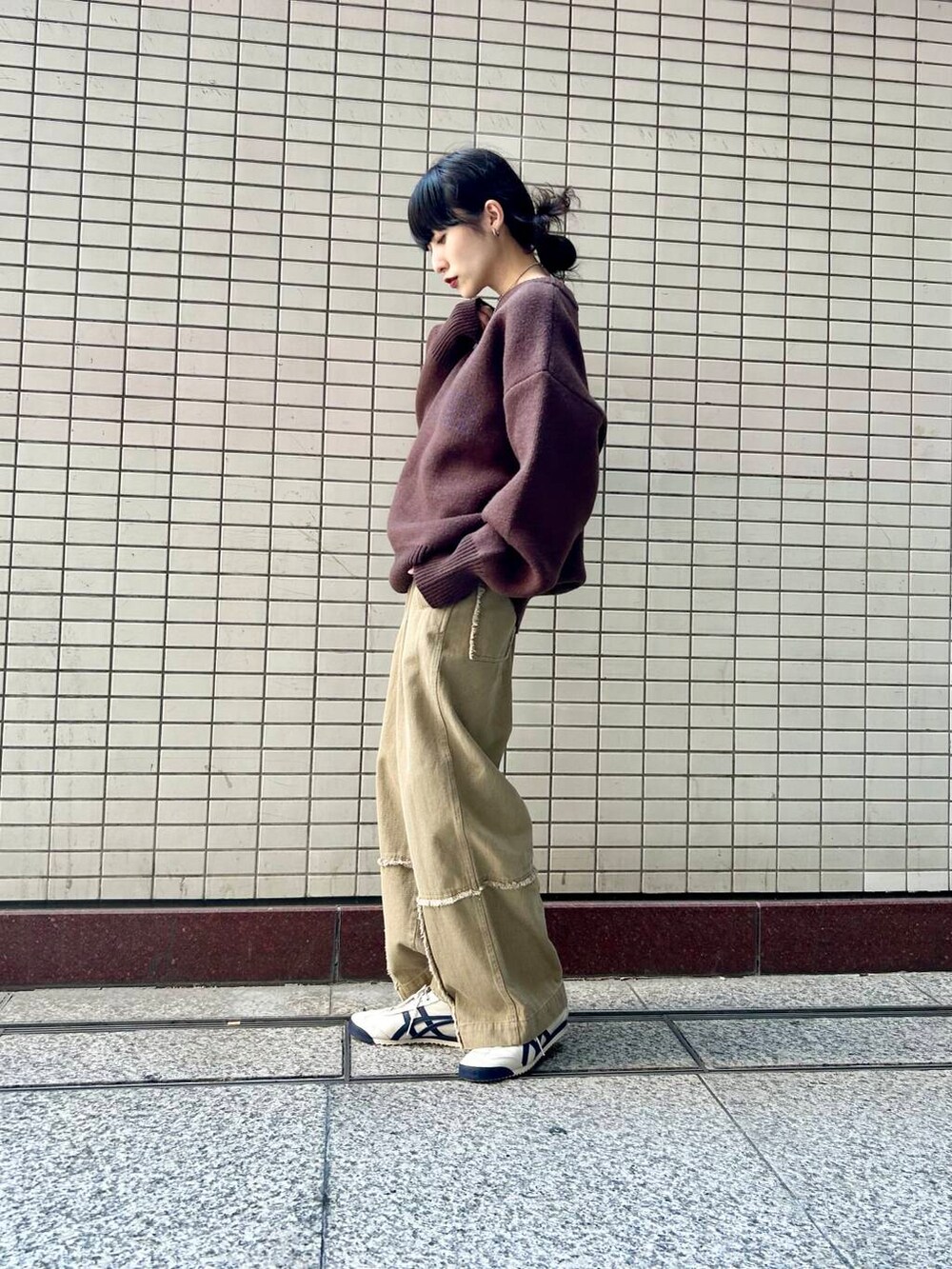 足元はスニーカーでラフに。