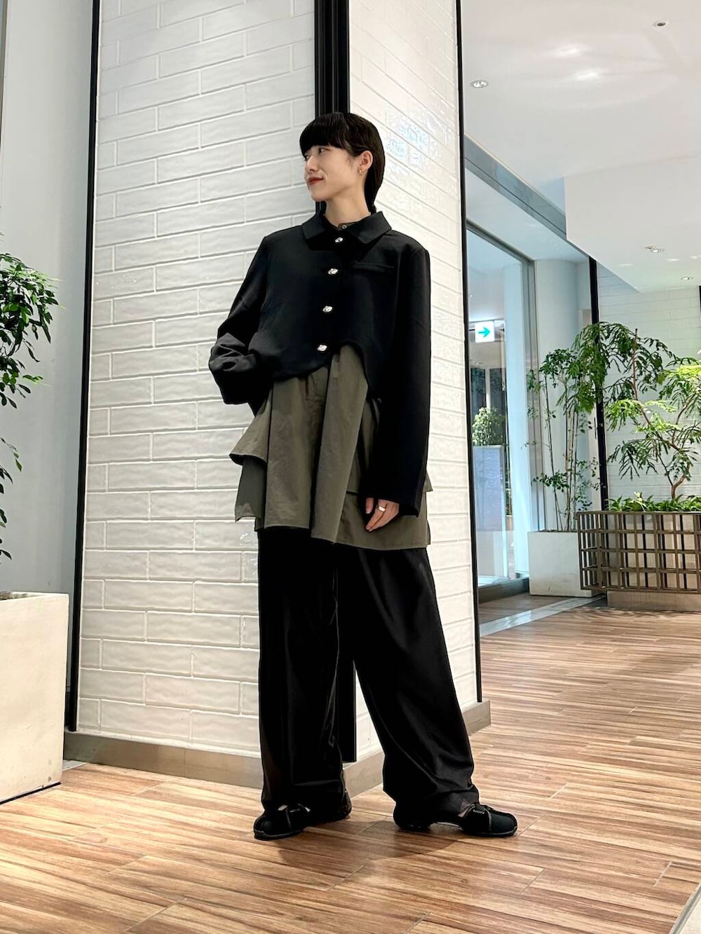 デザイン性のあるヘムカットジャケットは、羽織でも、1枚でシャツっぽくきても◎