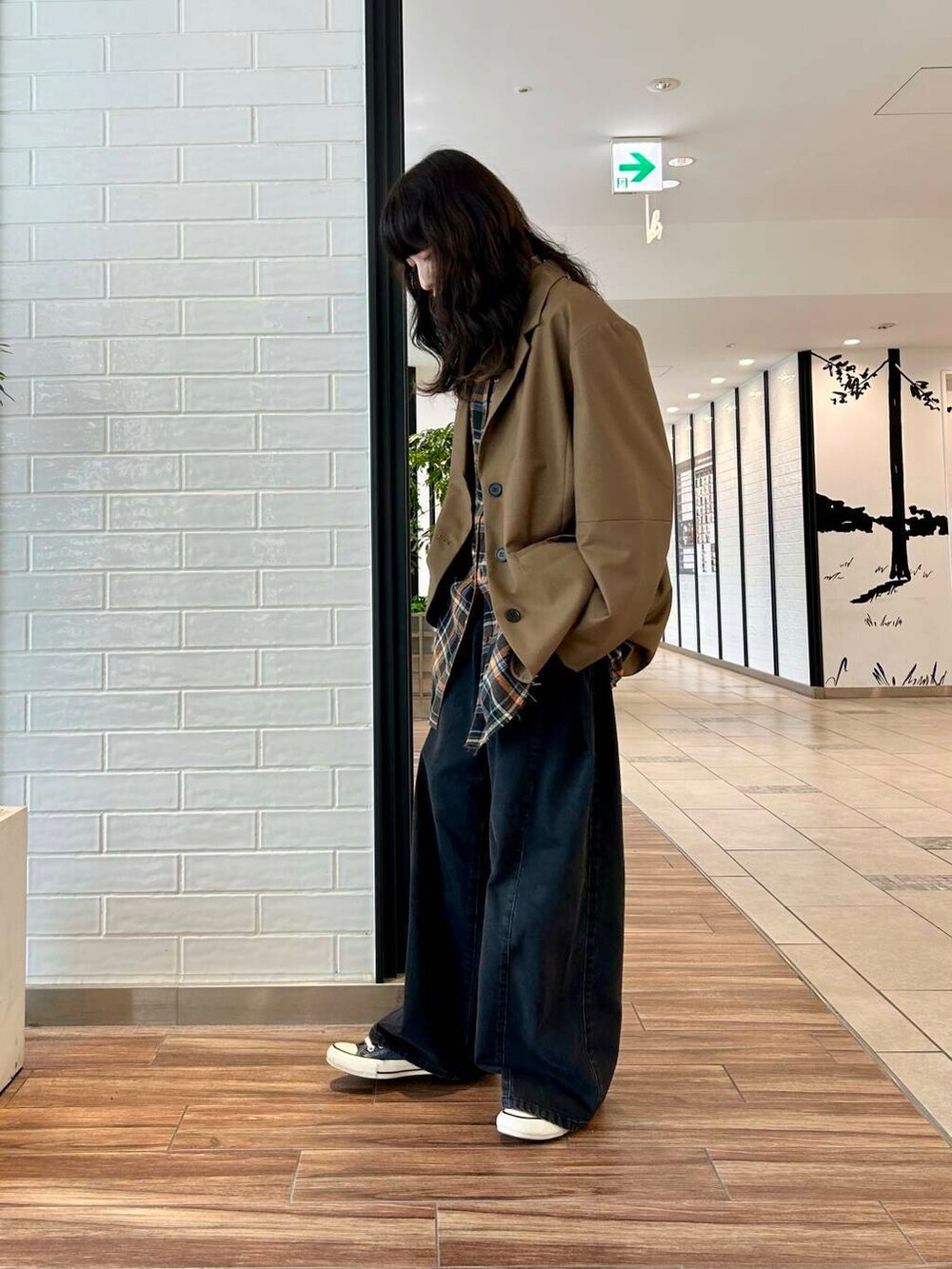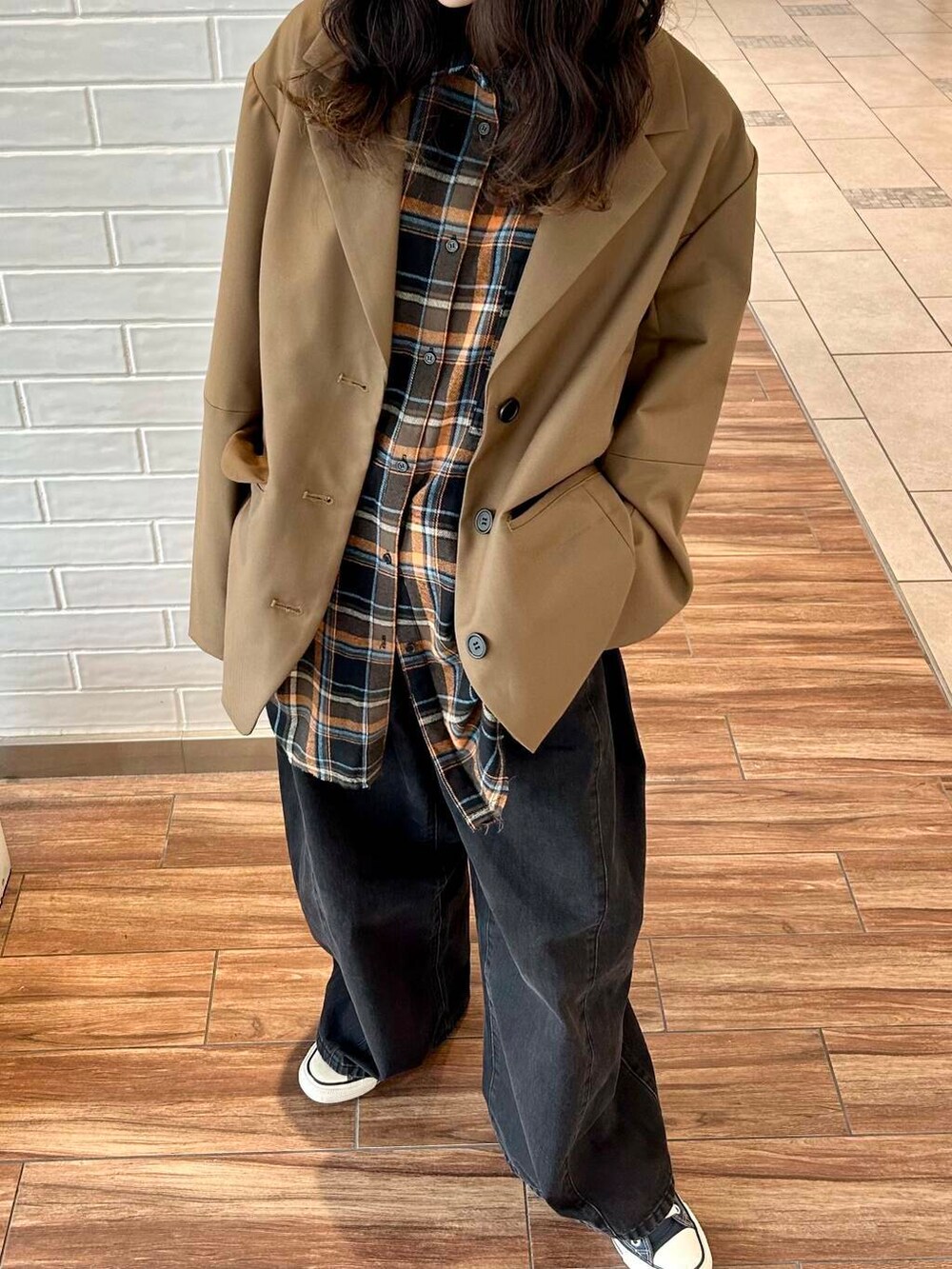 ゆるっとサイズが可愛いジャケットは、シンプルなので綺麗めにもカジュアルにも着回せる万能アイテムです!