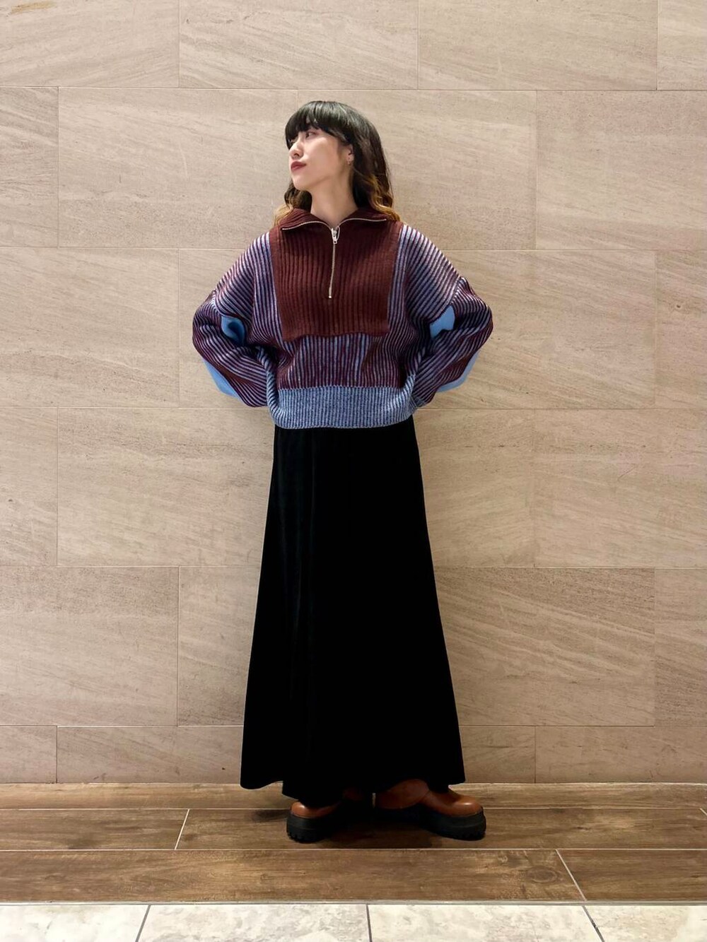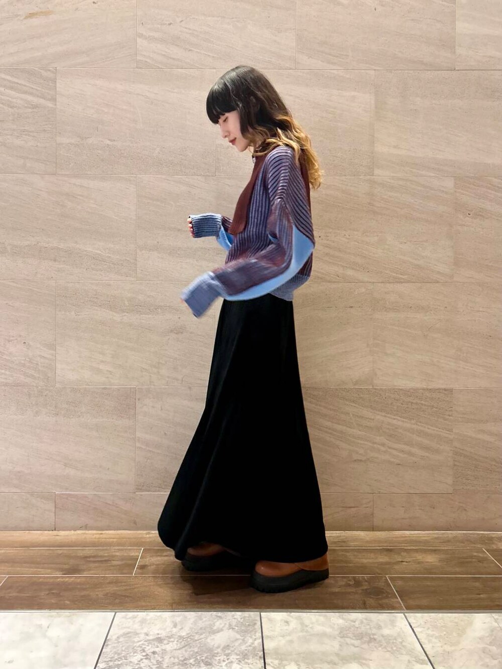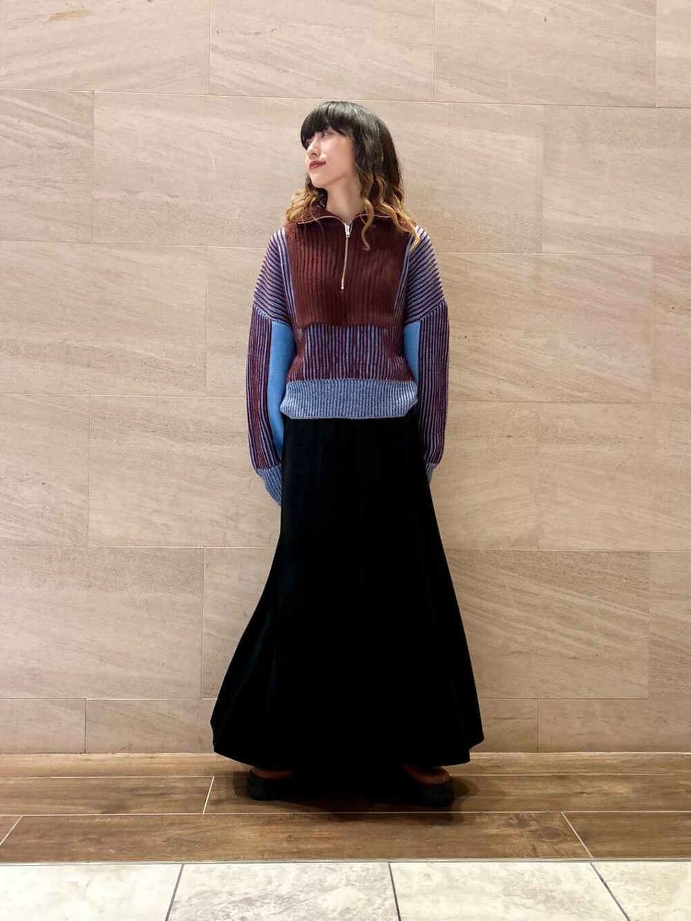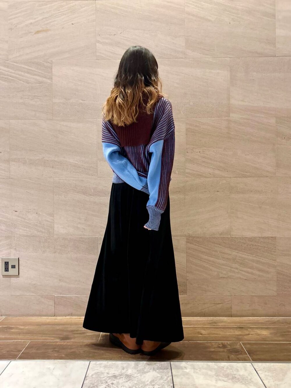 セミフレアのスカートは、ウエストゴムなので着心地も楽で、シンプルなデザインなので着回しもしやすいです!