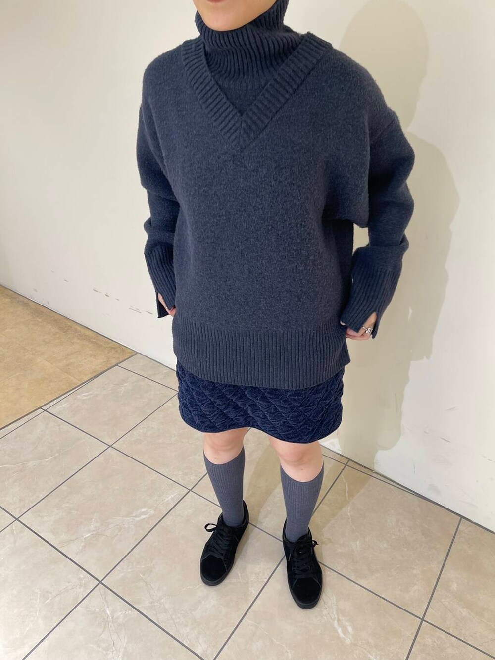 ネイビーのワントーンでミニスカートを大人っぽく着こなしてみました✨