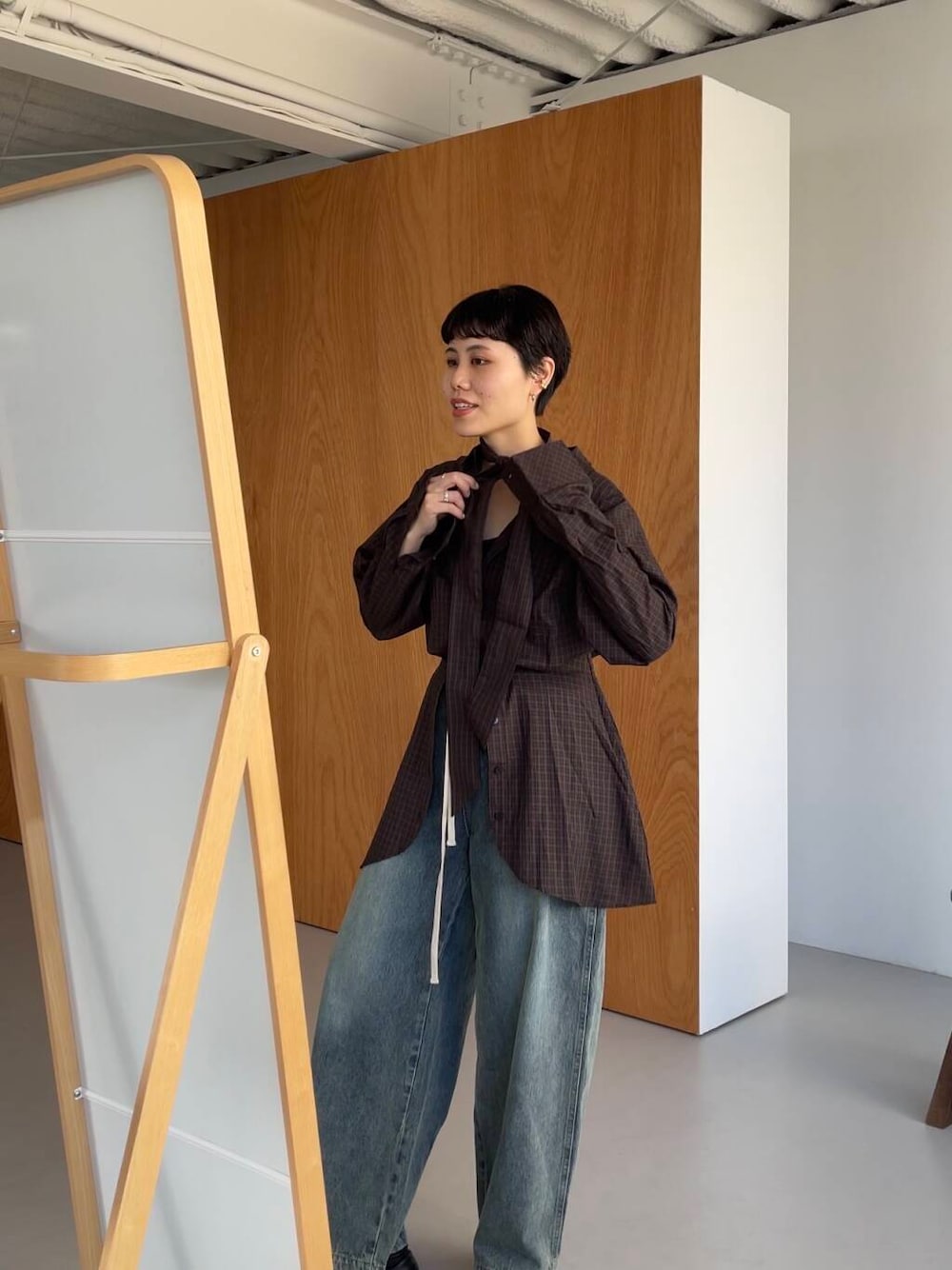 秋の着こなしとは変化をつけて気抜けた雰囲気に着こなすのがポイントです✨