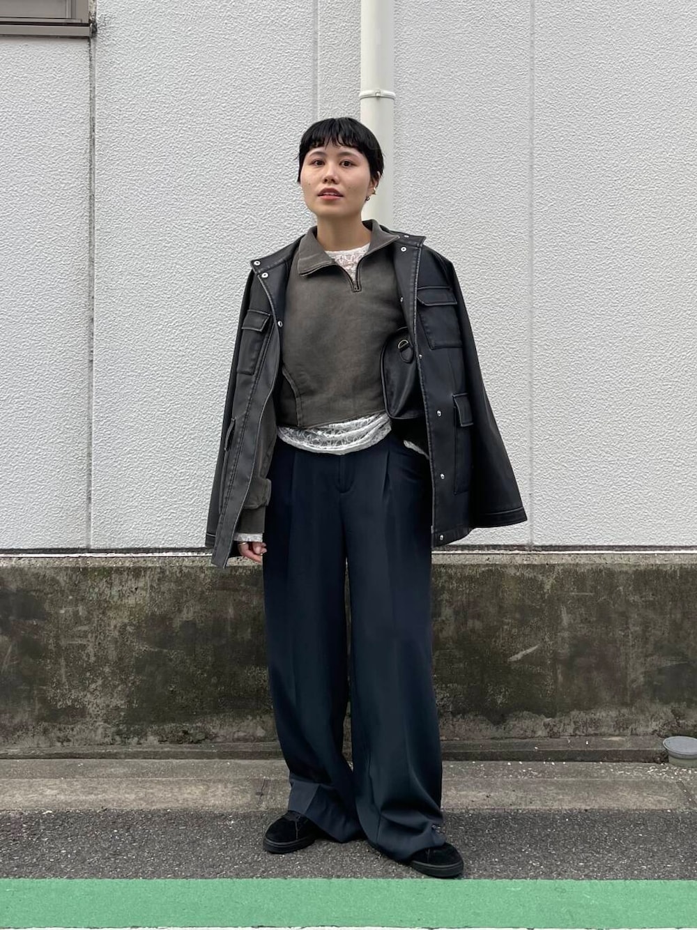 古着感のあるスウェットにはスラックス合わせがKBFぽくってかわいいです😊
