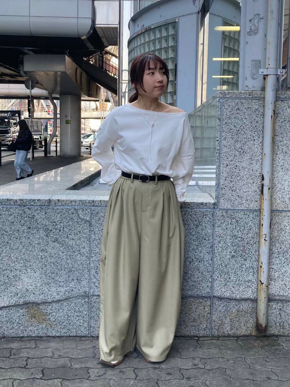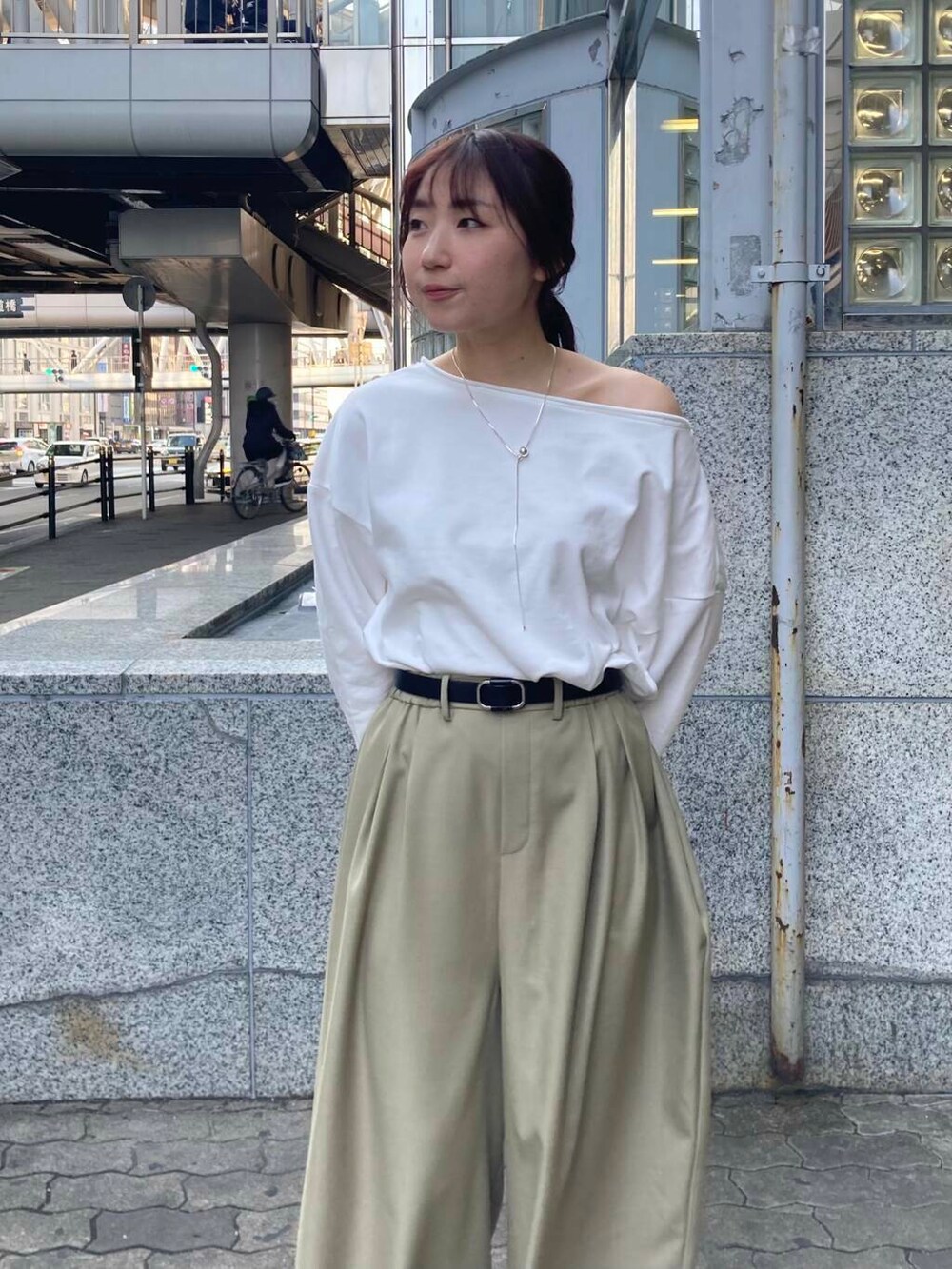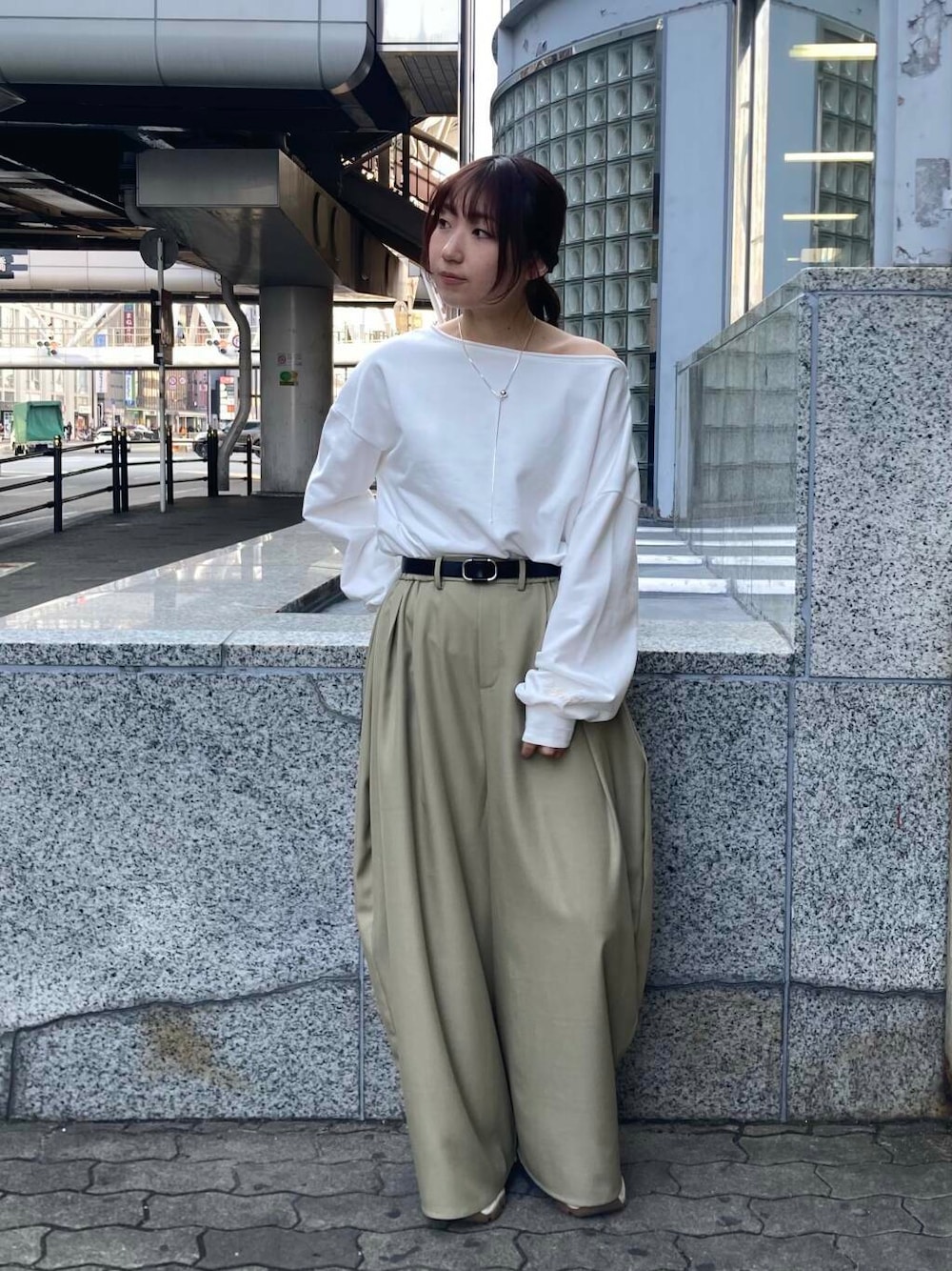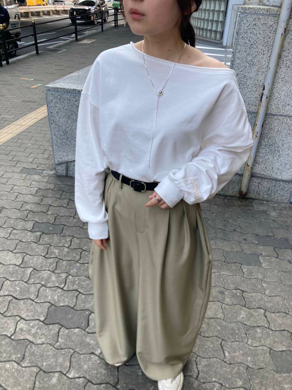 手元のロゴ刺繍とバランスをとりたくてスニーカーにしたけど、とことんレディに仕上げるなら足元はヒールでもかっこいいと思います✨