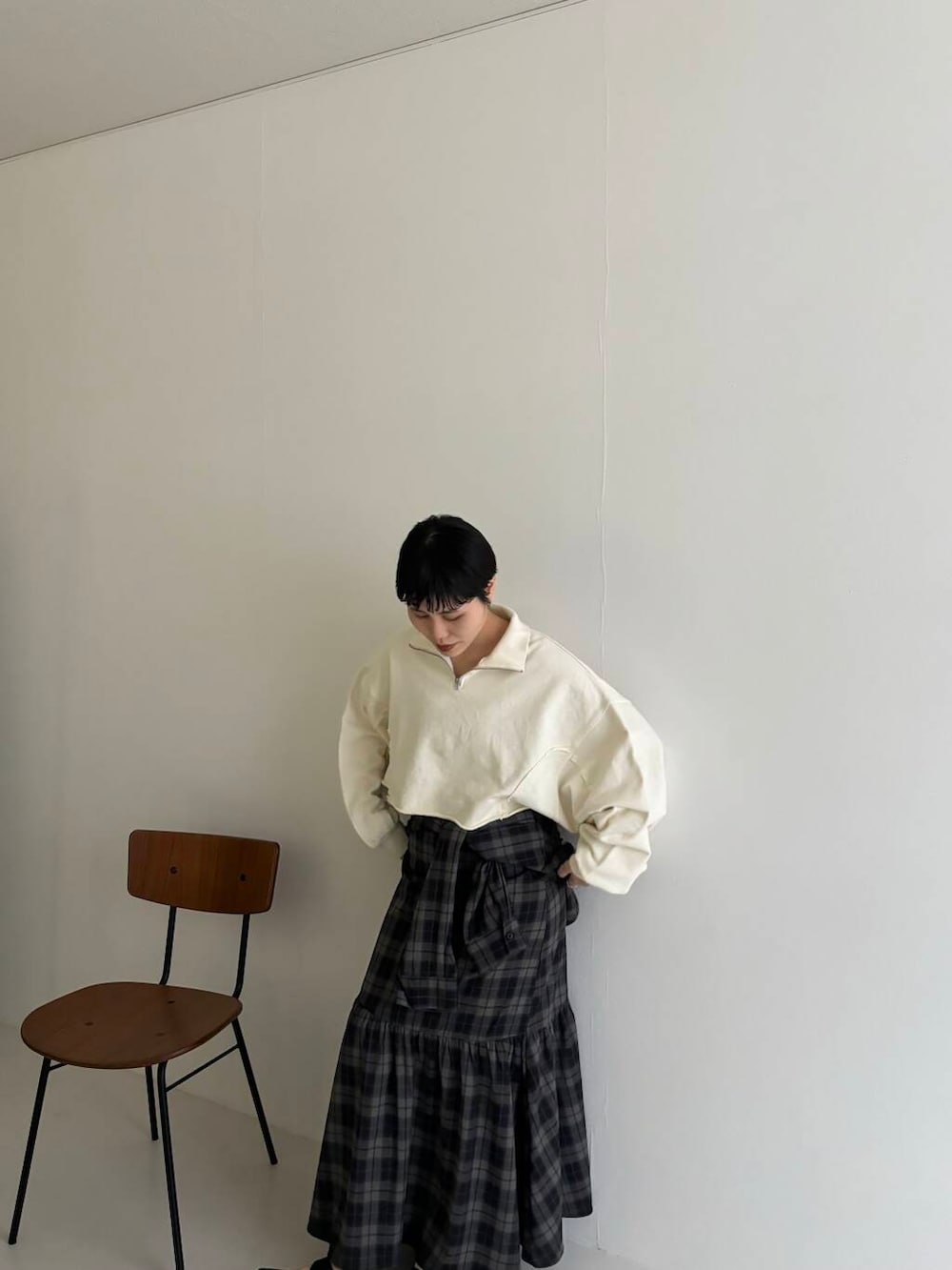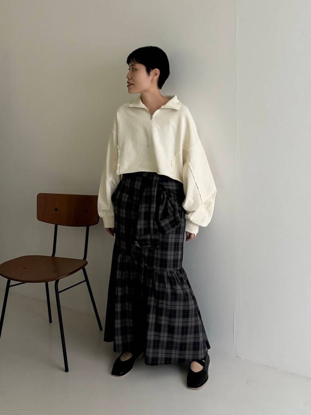 スカートスタイルはカジュアルなスウェットと合わせるのが気分です😊