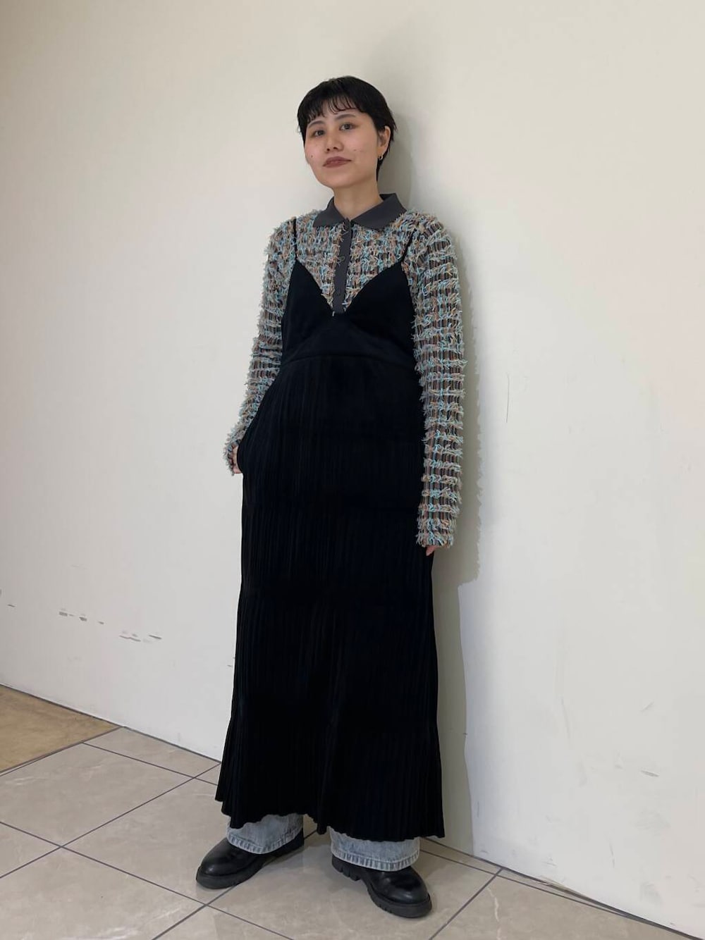 シンプルなデニム合わせもかわいいですがワンピースの中に合わせるのもおすすめです!