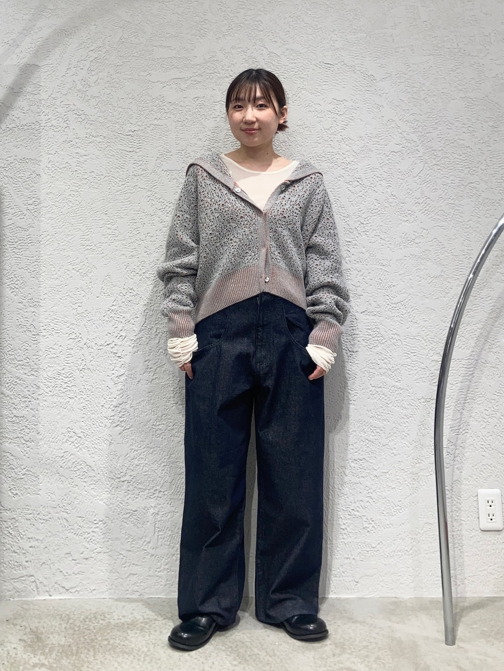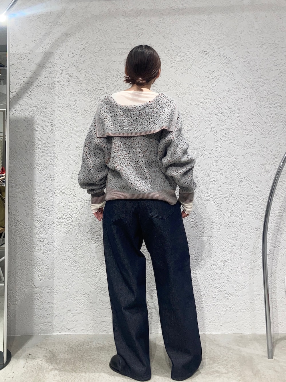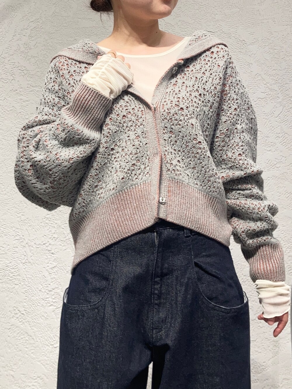 大人気のBIGポケットデニムはハイウエストなので短丈のニットと相性◎です✨
