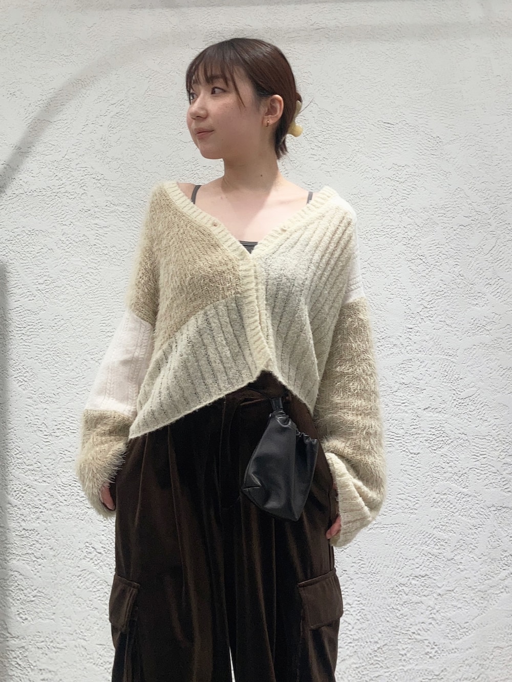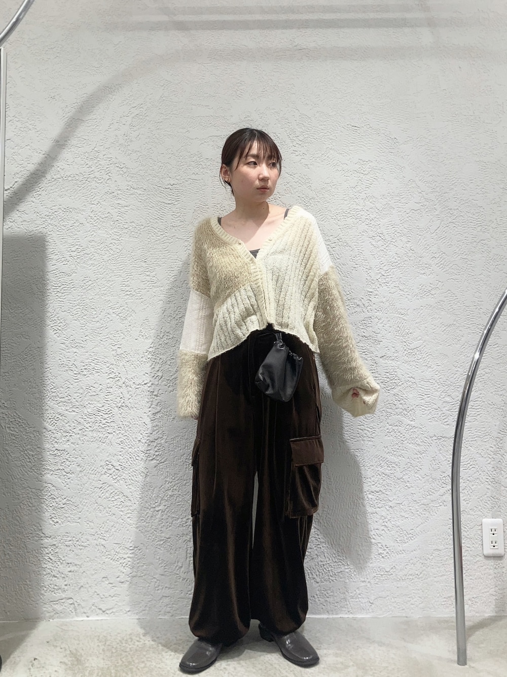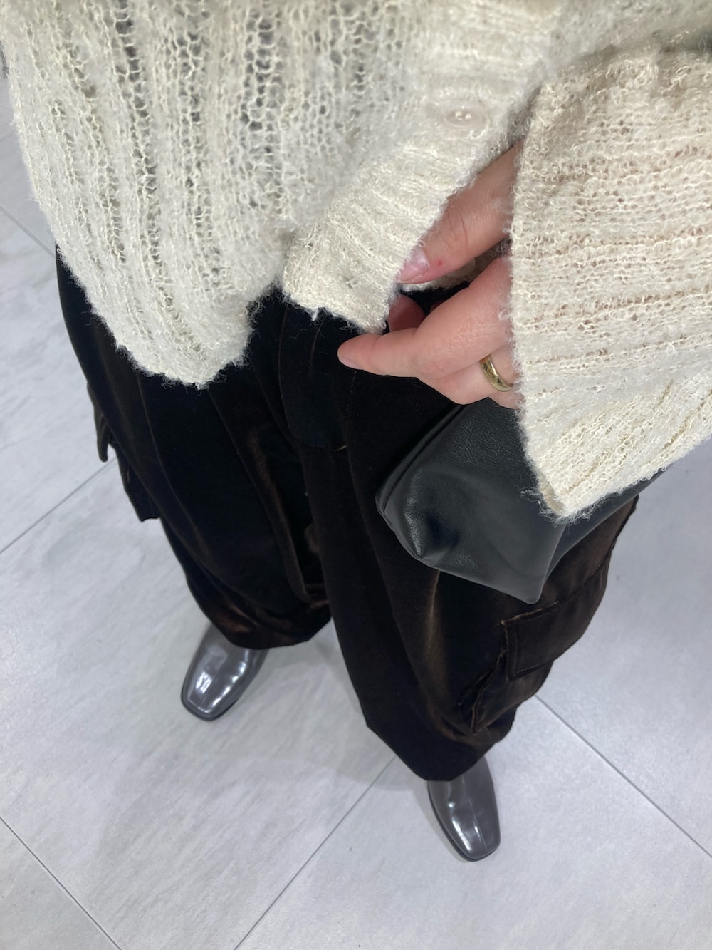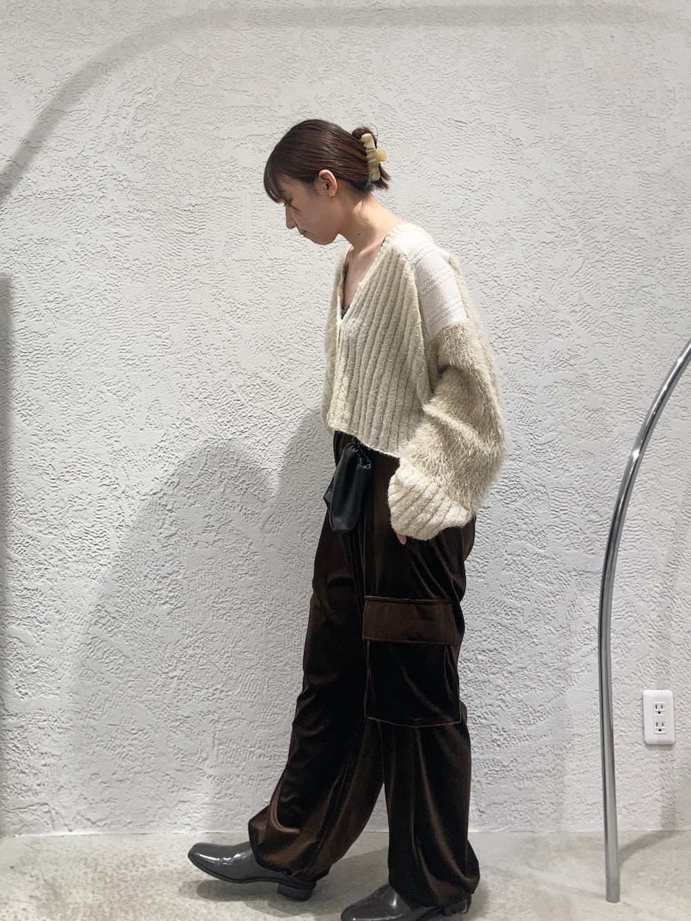 ベロア素材のボトムと合わせるとトレンド感が出ておすすめです!