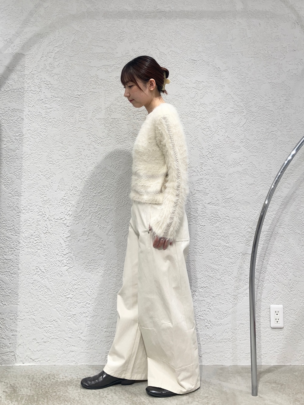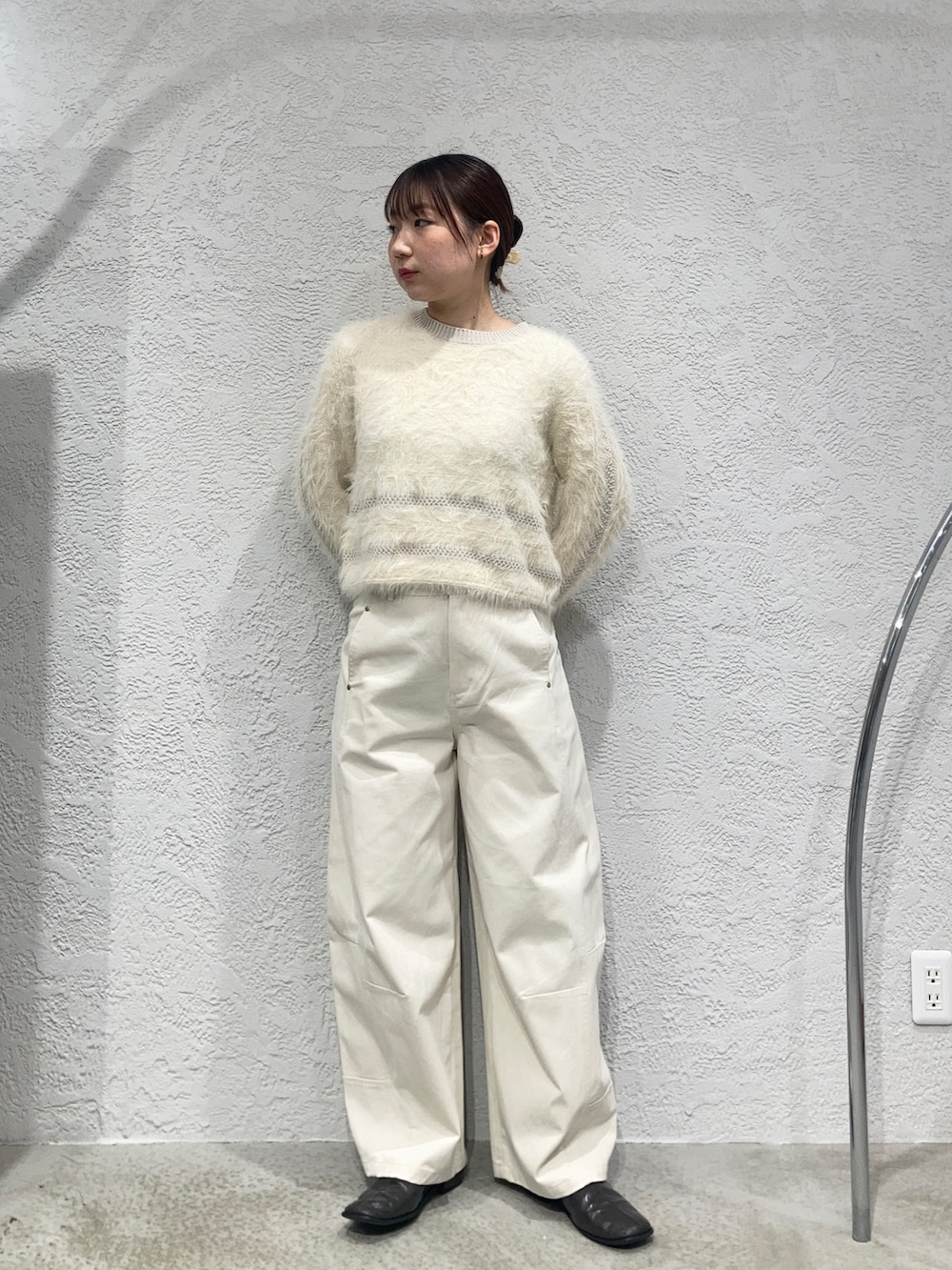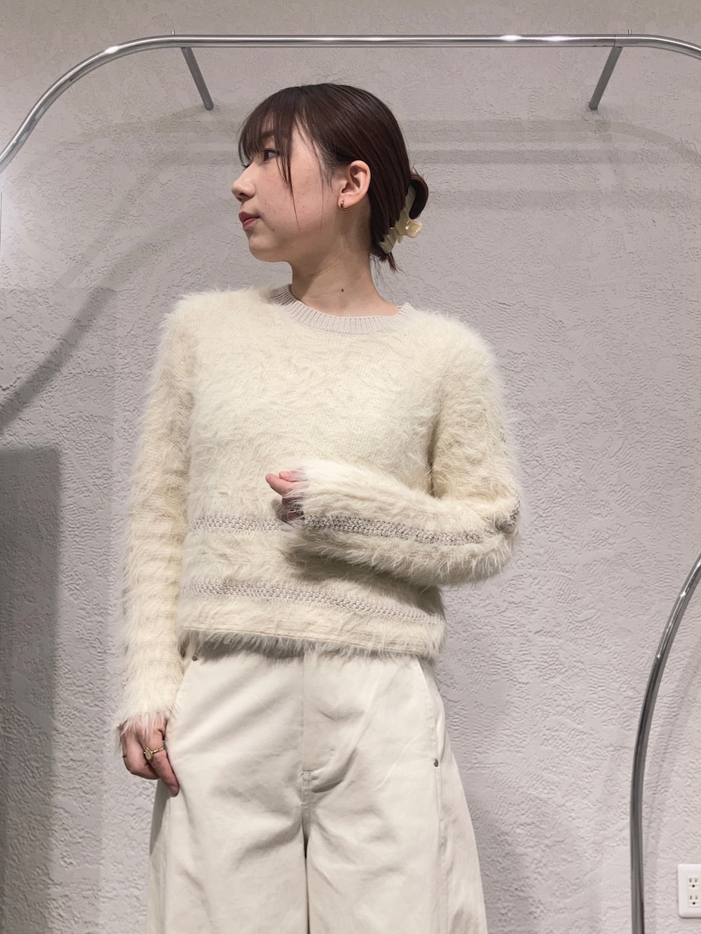 ホワホワだけどコンパクトなシルエットのニットはさりげないラインデザインがアクセントになります✨