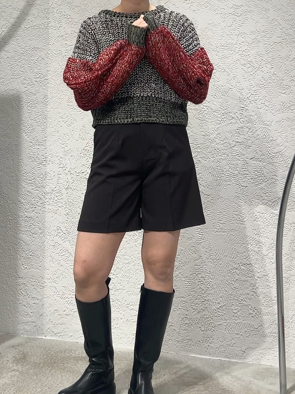 さりげないクリスマスカラーが可愛いホリデーコーデ!ロングコートにショートパンツとロングブーツを合わせて大人っぽさもありキュートなコーデになりました!