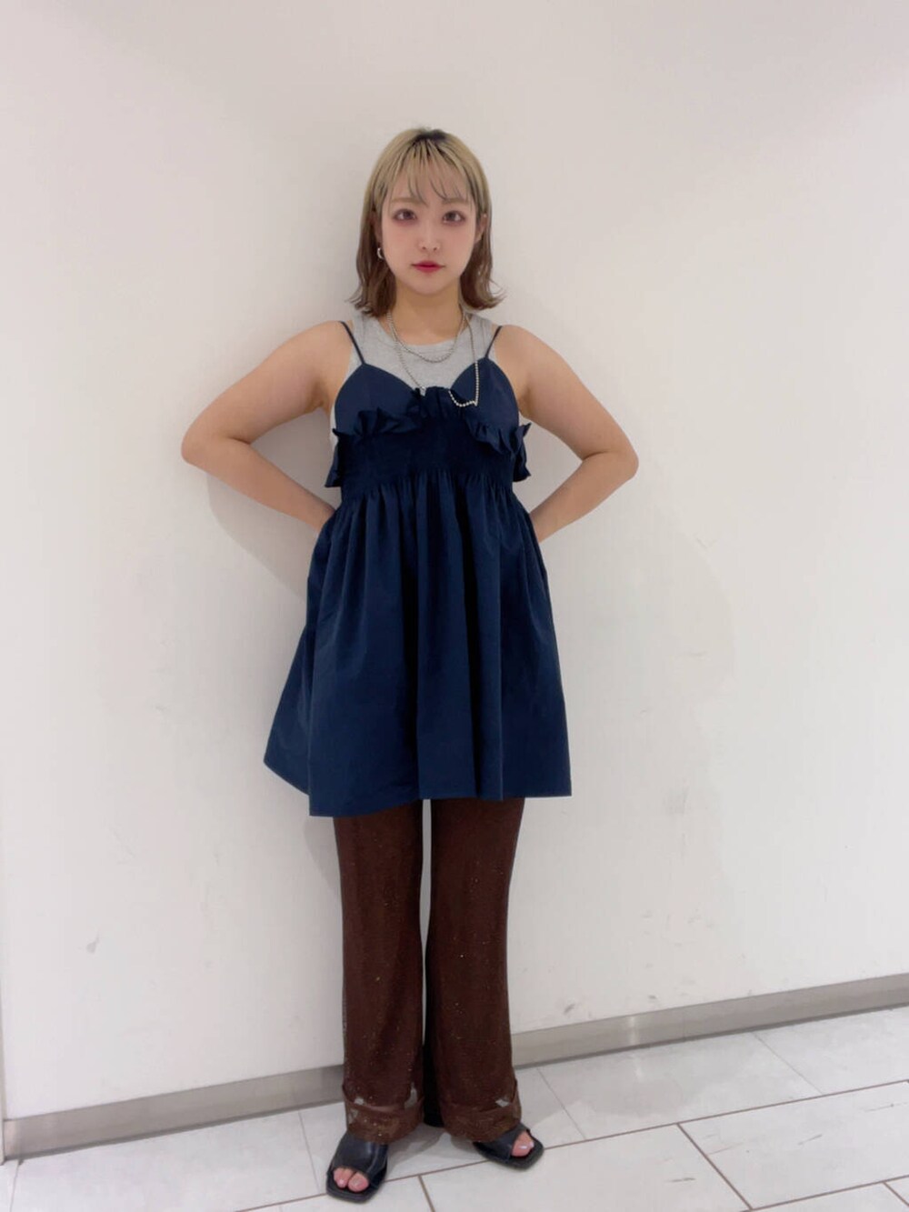 ミニワンピースにフレアパンツを重ねて着てみました🎀