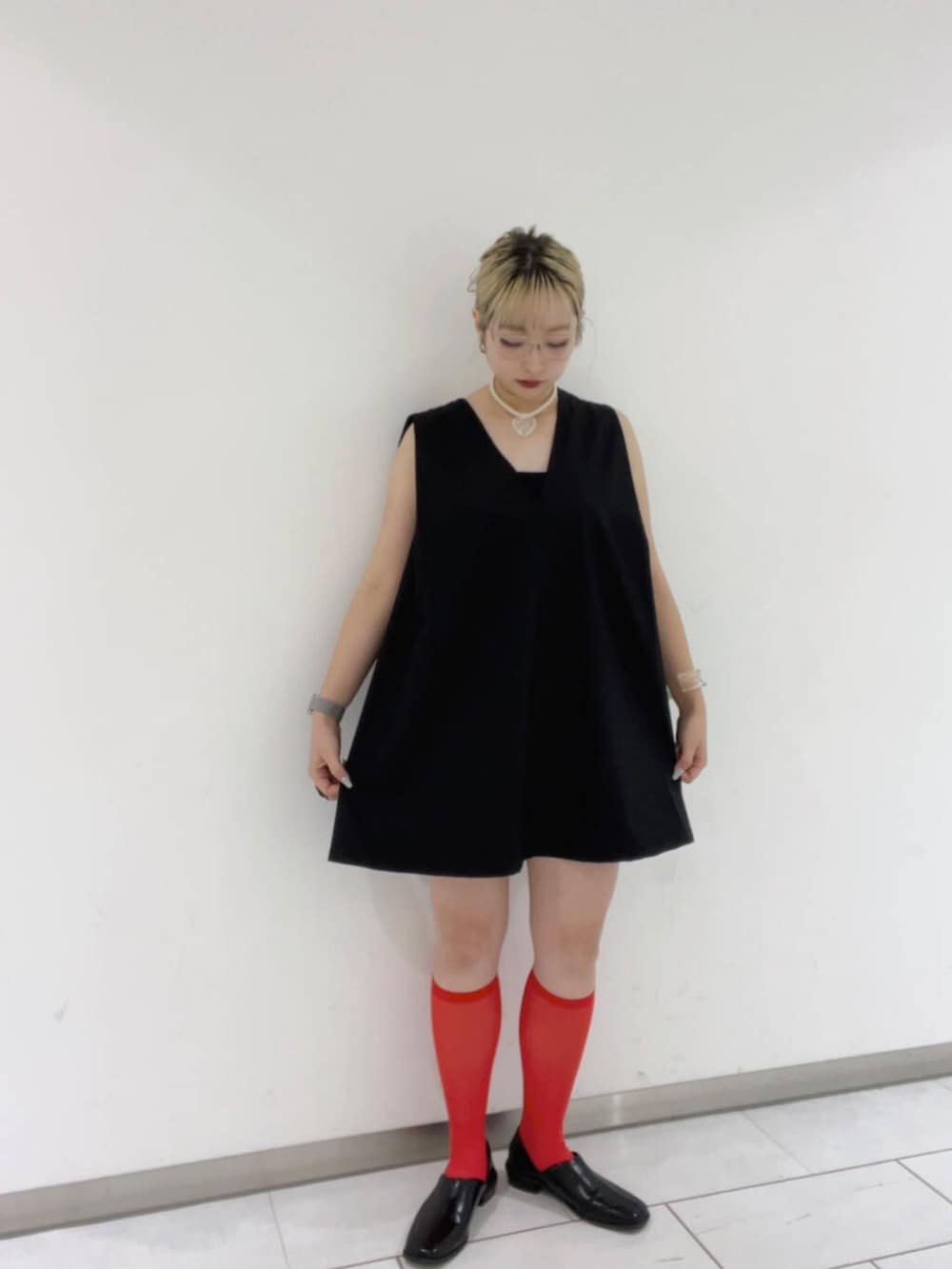 まだ暑いのでキャミにノースリーブワンピとして着てみました🖤