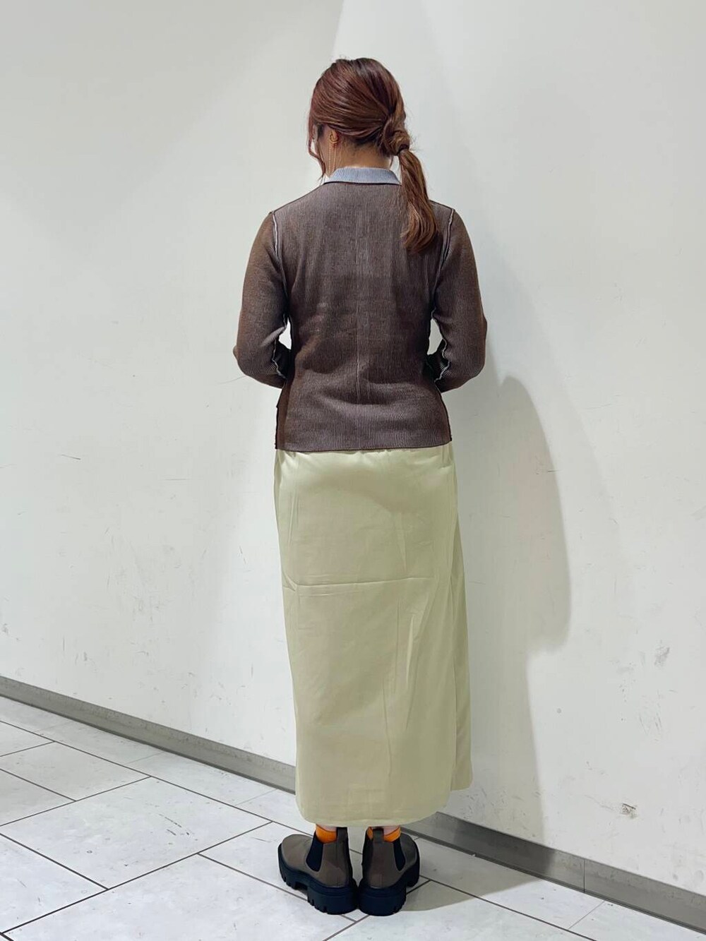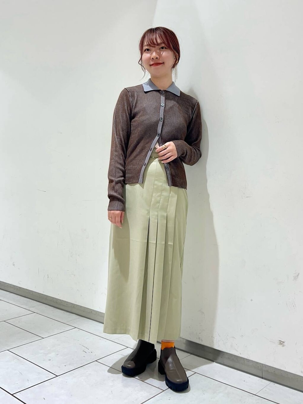 ラップスカートもデザイン性がお洒落なのと、広がらない形がスッキリ着れるので、大人っぽい印象になります🧡