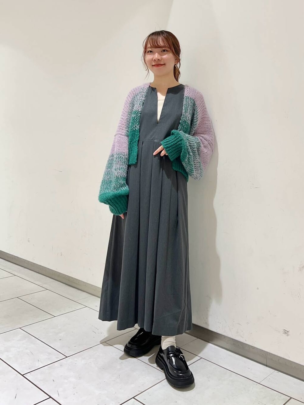 ショートカーディガンはゆるめなシルエットと配色が可愛いです🩷💚