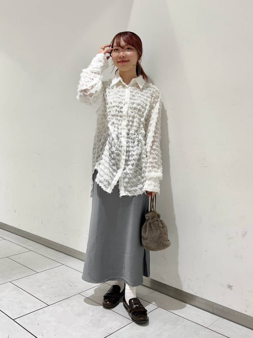 サテンのスカートもシルエットが綺麗なのでゆるめなニットやシャツと合わせて着てもスッキリ見えて可愛いです♡