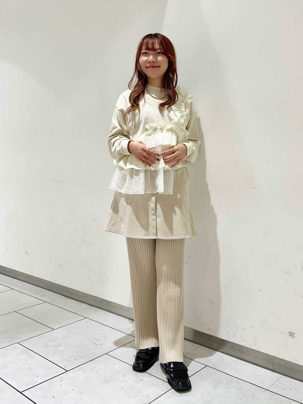 フリルドッキングスウェットは、袖の部分がスウェットの生地感になってるので甘すぎないデザインです!
