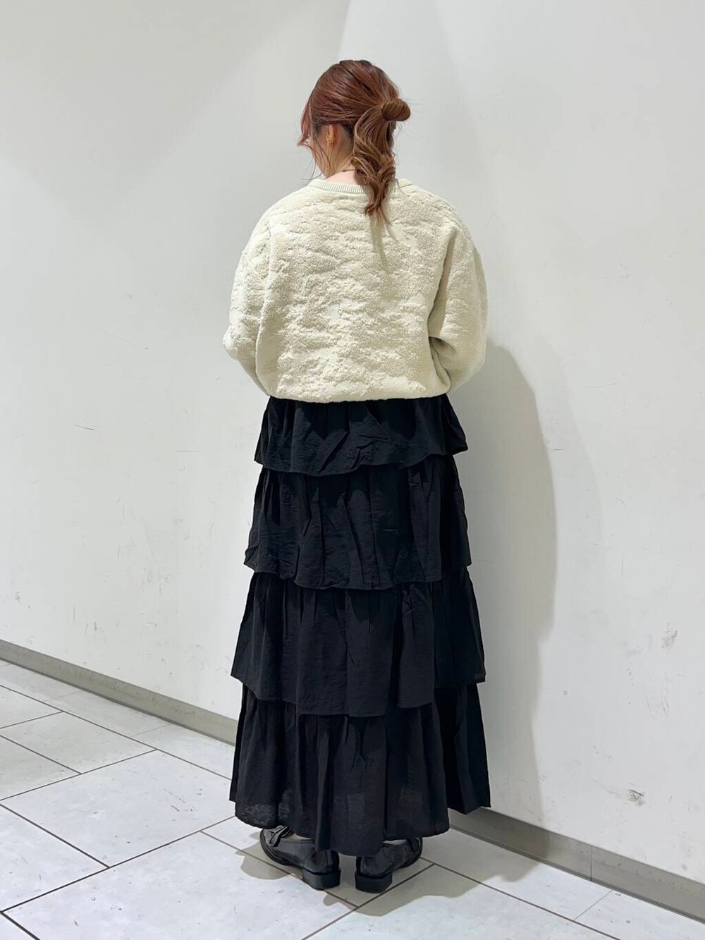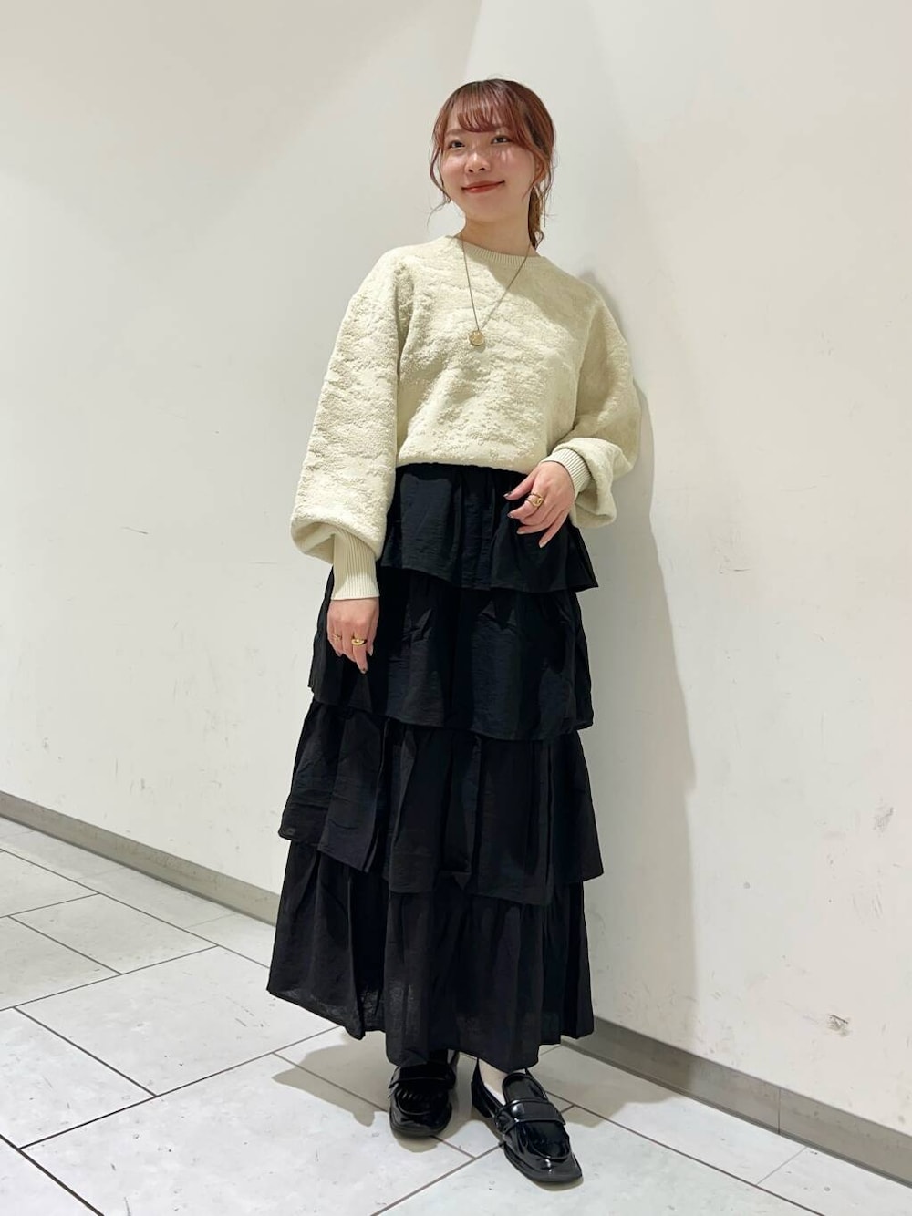 冬はニットを着る機会が増え、オシャレに着るのが難しくなりますが、このスカートはデザインがしっかりある分、カジュアルめなニットでもオシャレに見えます🫧