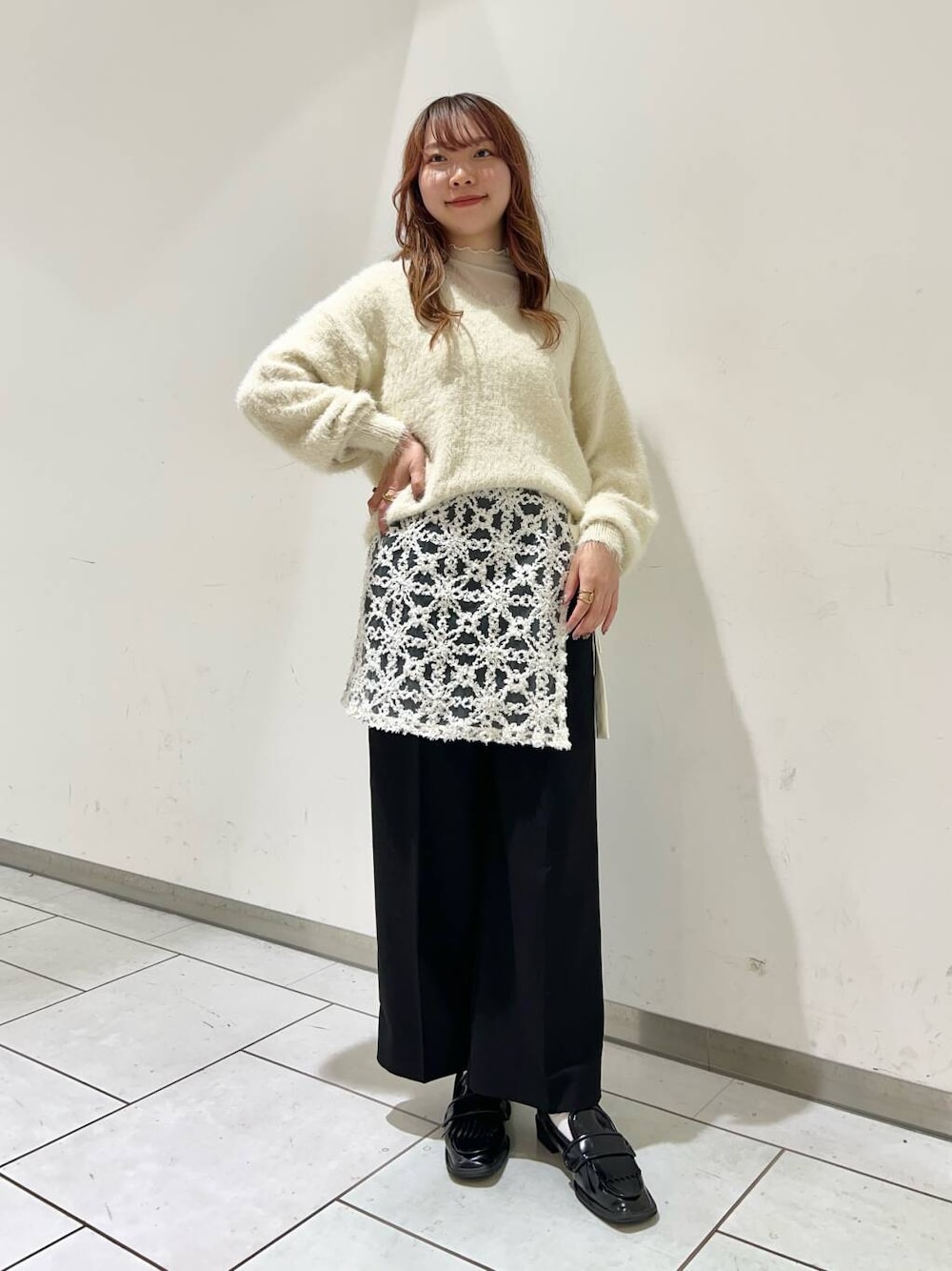 シャギーのニットは冬らしい素材感で肌触り気持ち良く、着やすいです♩