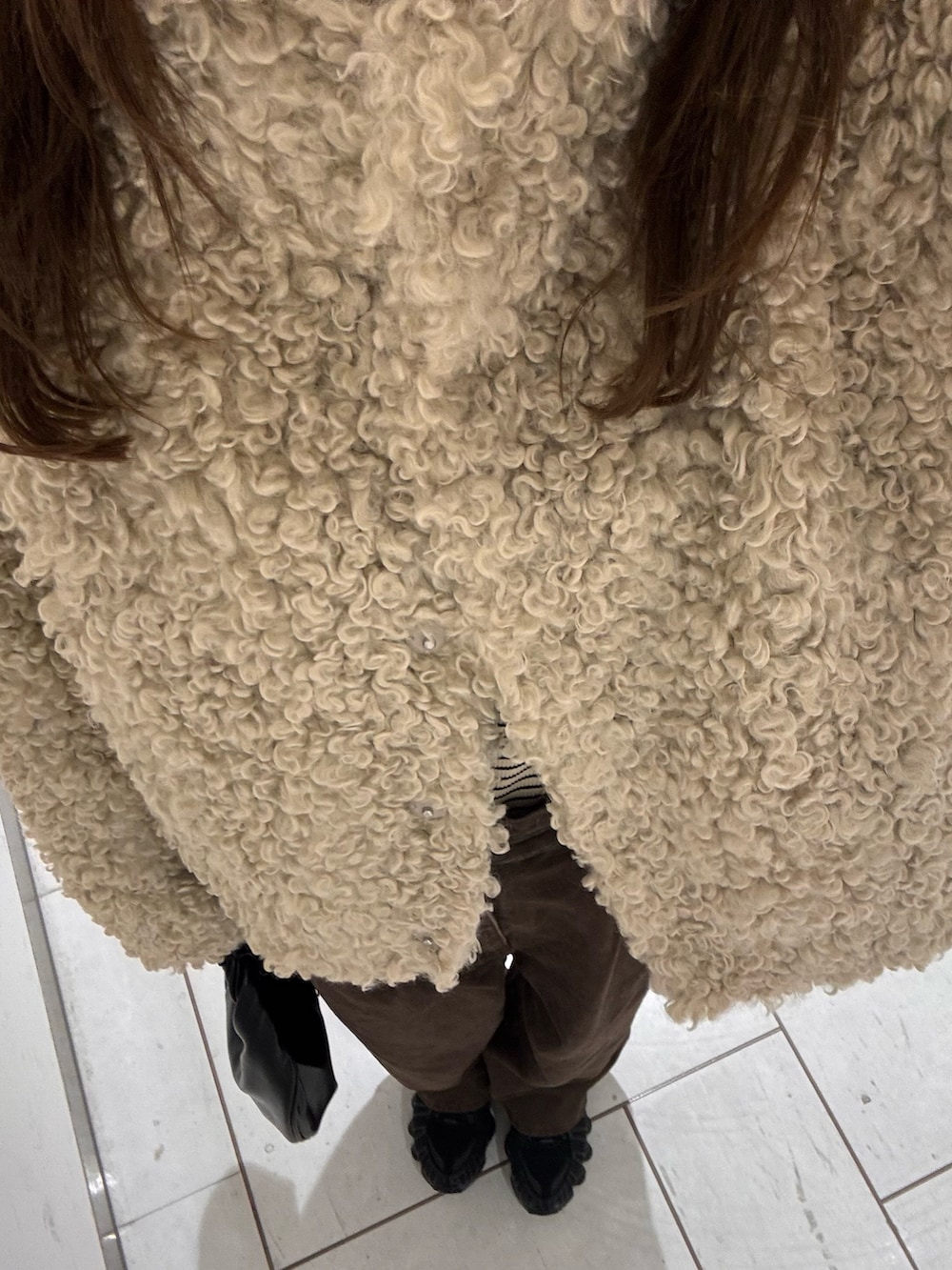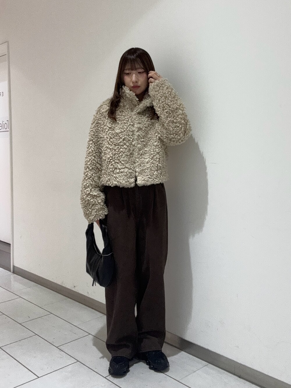 ボアのアウターは丈が短めでハイウエストのボトムスと相性が良いです!