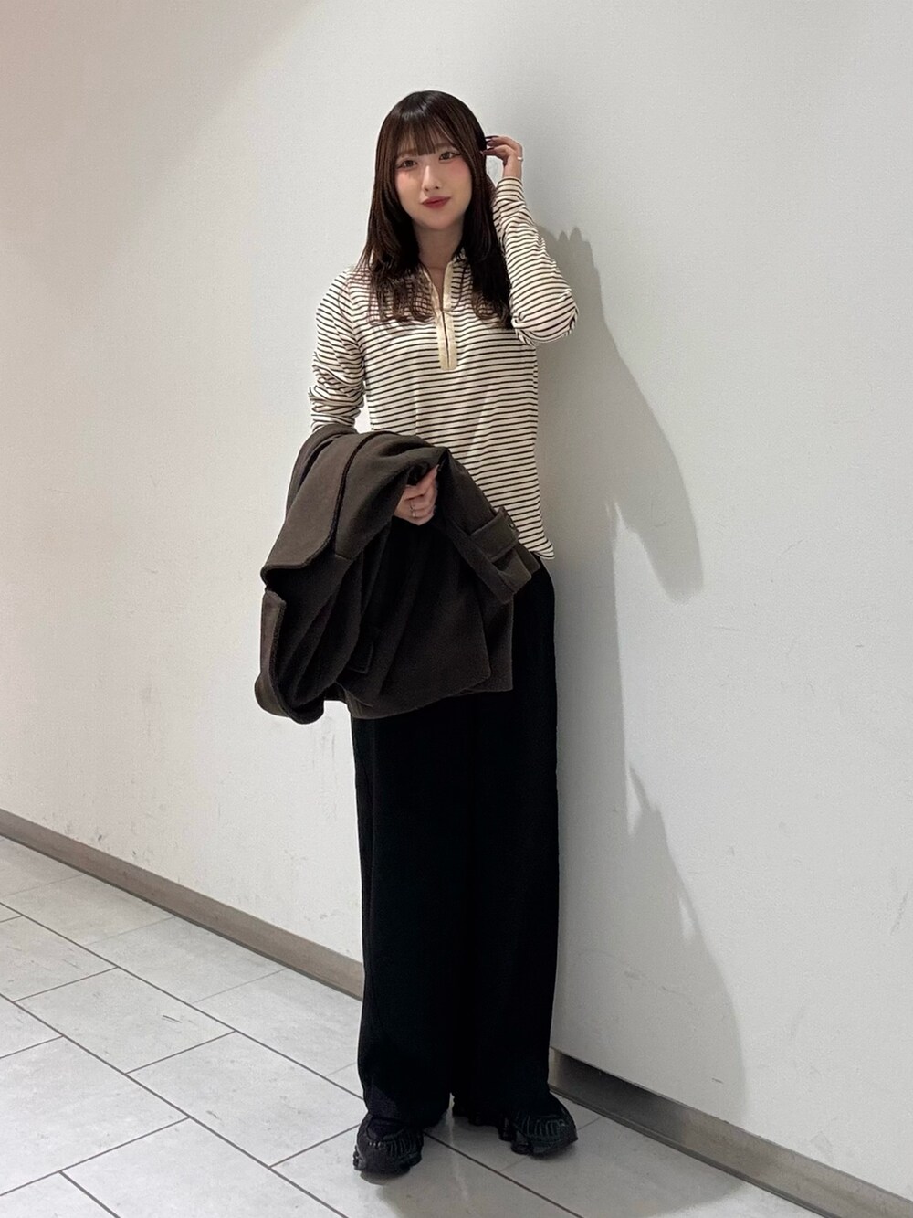 ボーダーのトップスはホックで空き具合を調整していただけます!またタートルネックとしても着用していただけるので1枚で雰囲気を変えることができるアイテムです✨!!