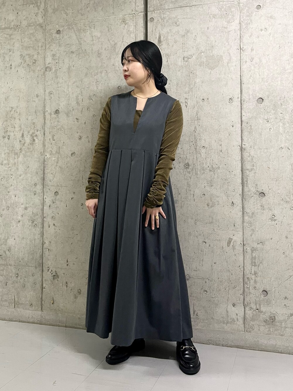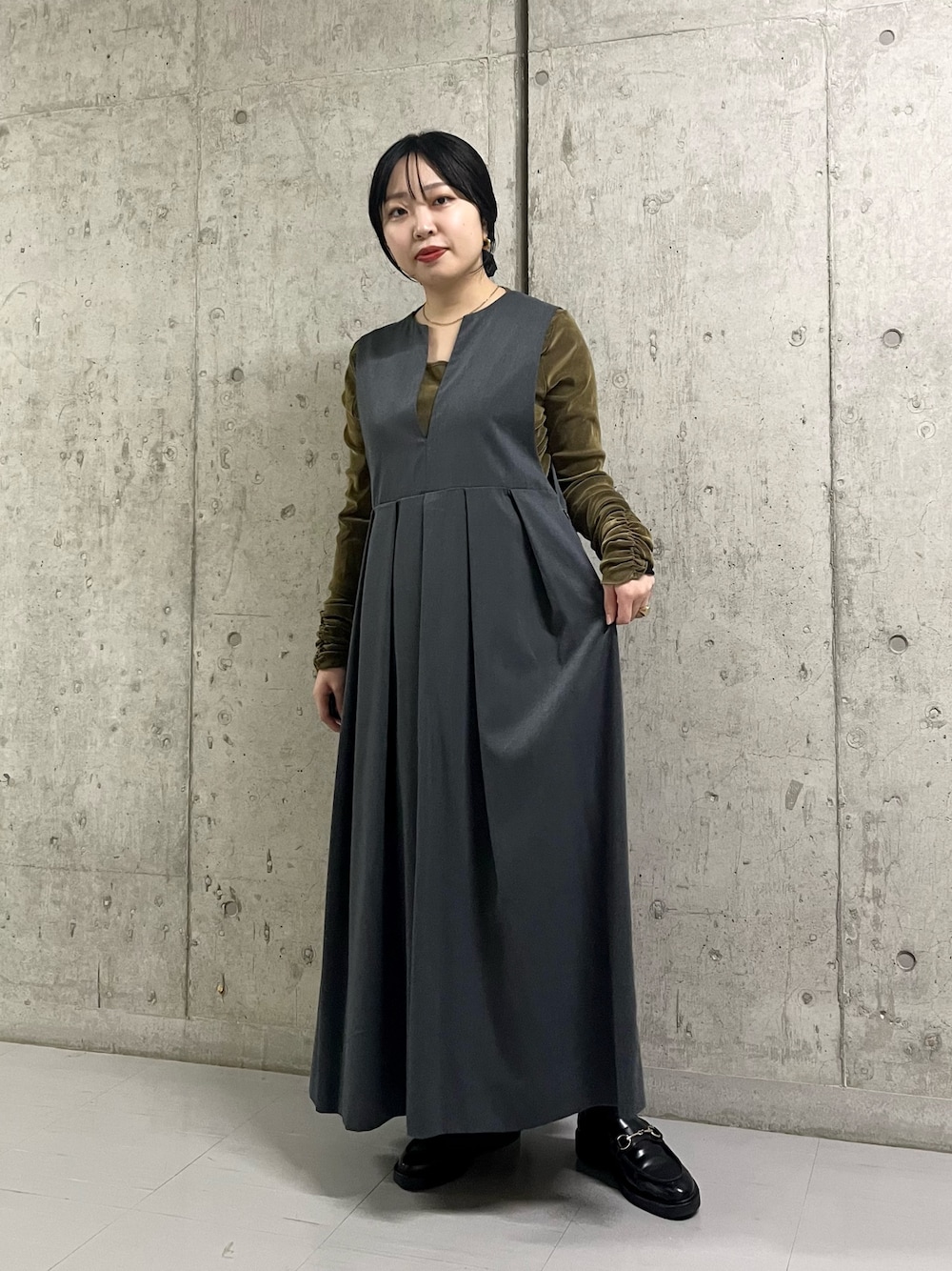 『2サイズ展開』キーネックBIGプリーツジャンパースカート