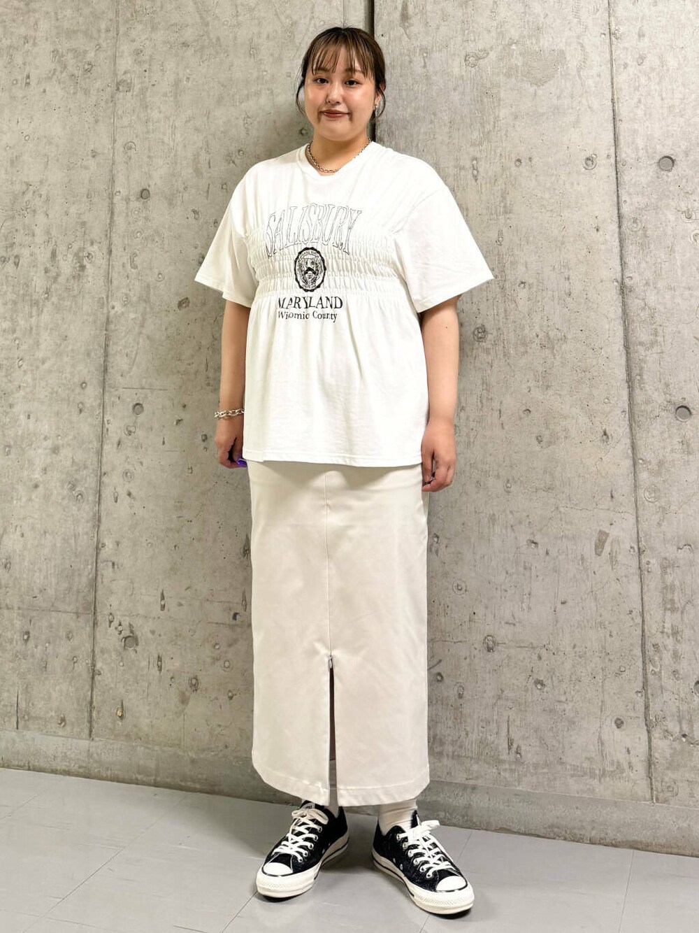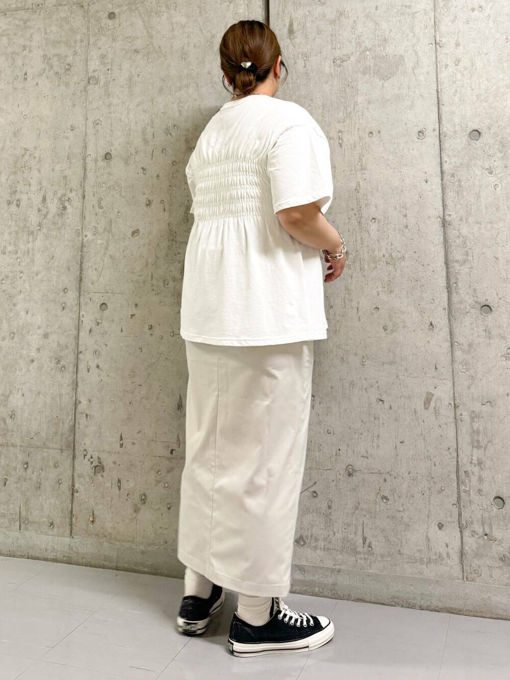 Tシャツはシャーリングデザインが珍しく、ボトムスとのバランスも取りやすくて◎