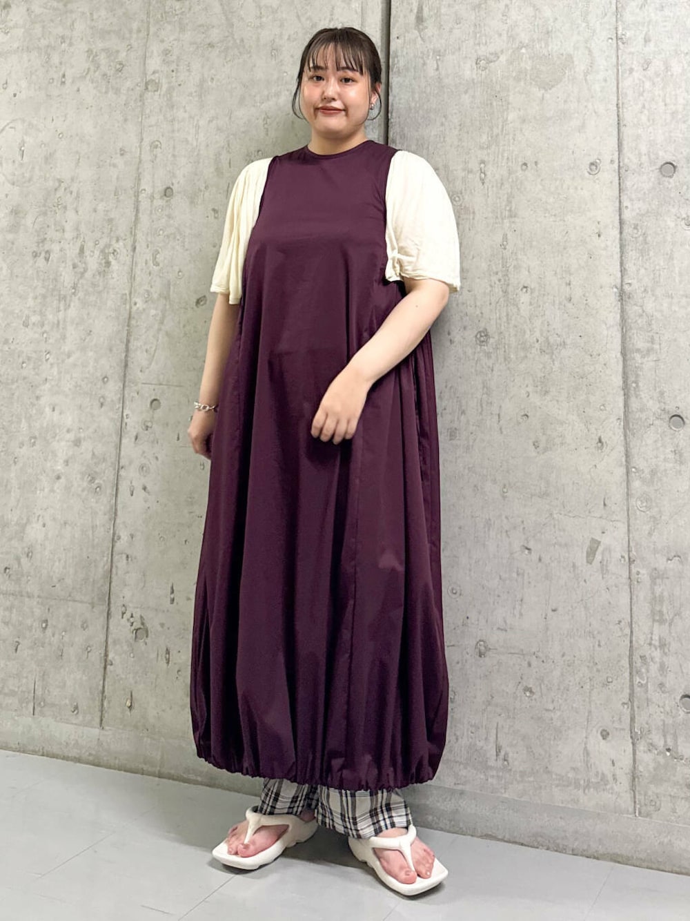 ワンピースはバルーンシルエットが可愛く、サイズもゆったりしていて着やすいです!
