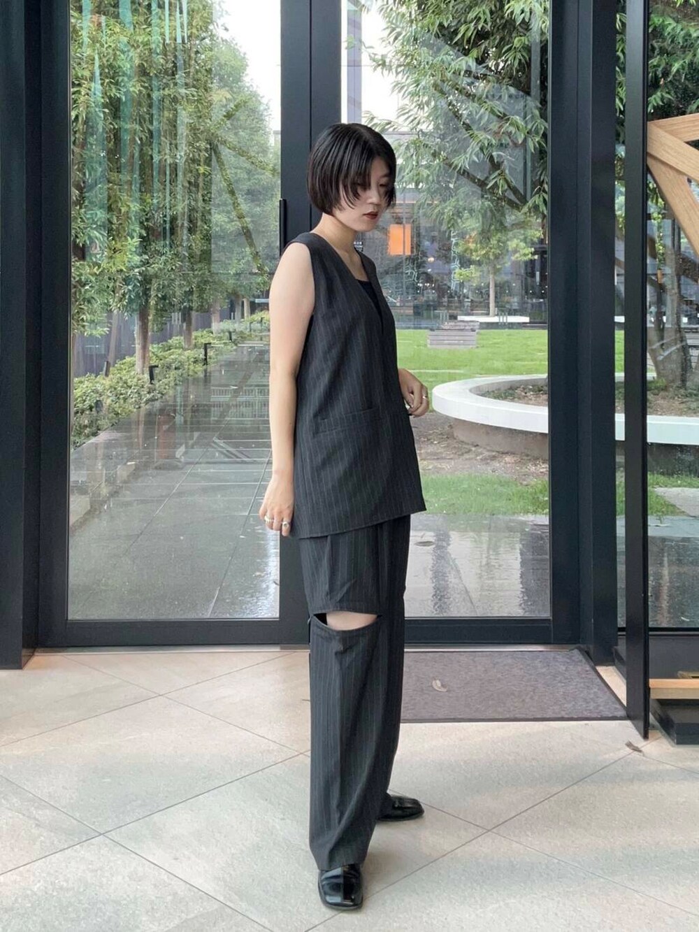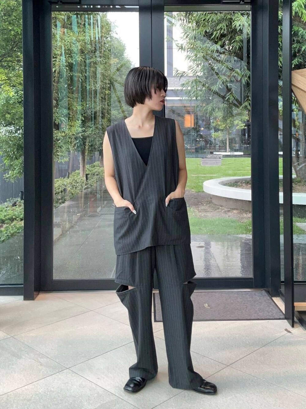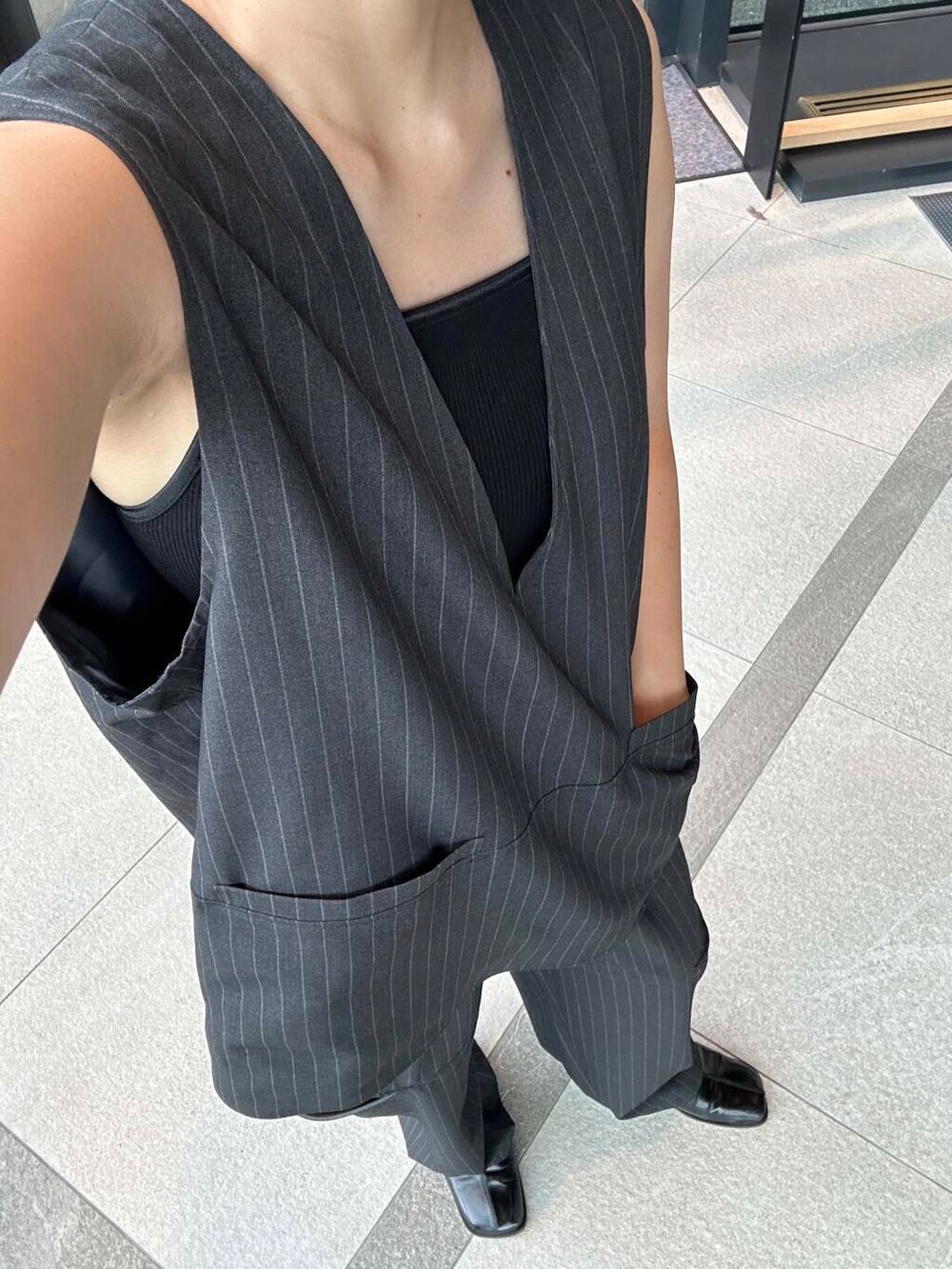 ゆったりしたベストは今はノースリーブで、涼しくなったら
