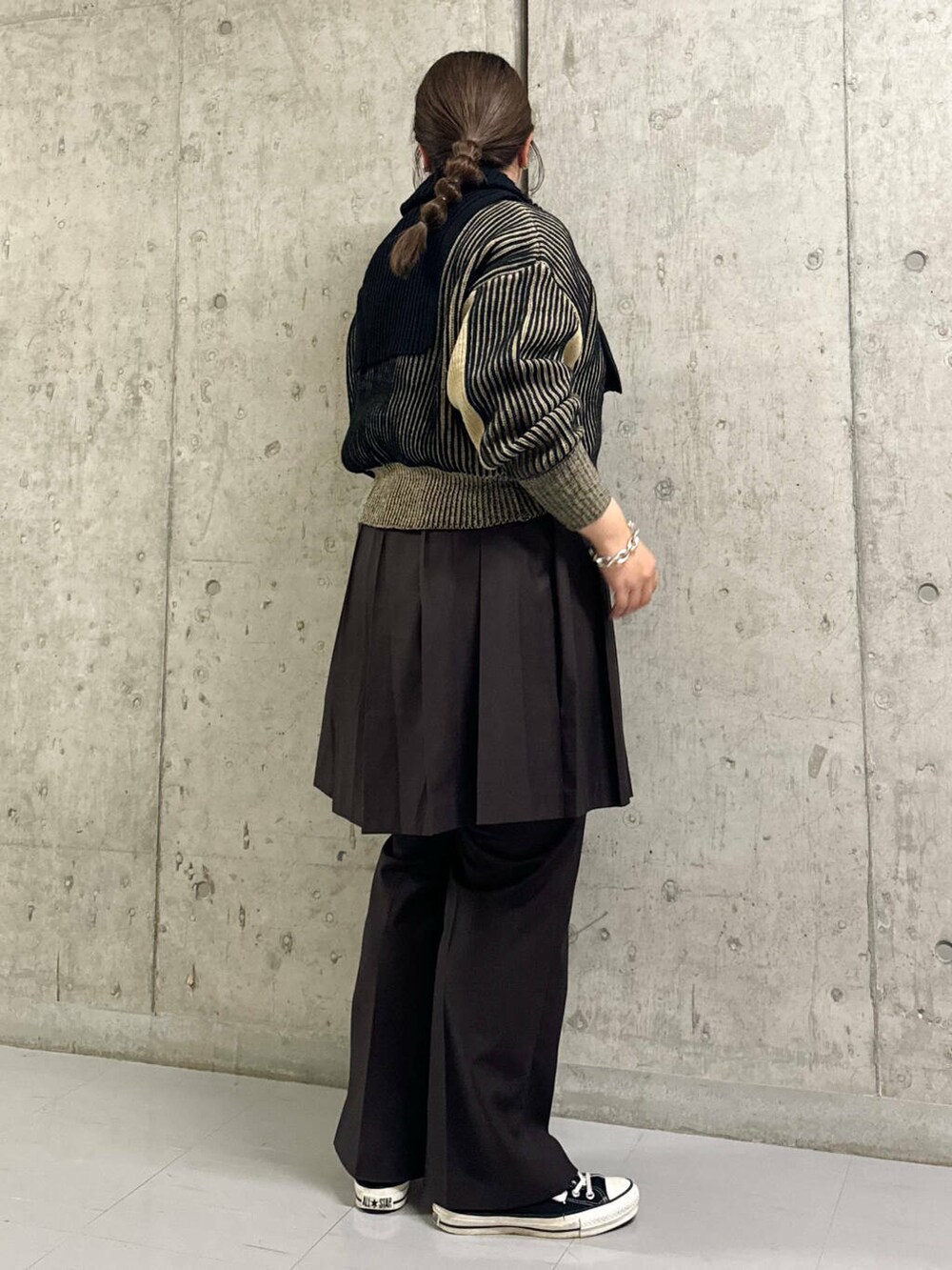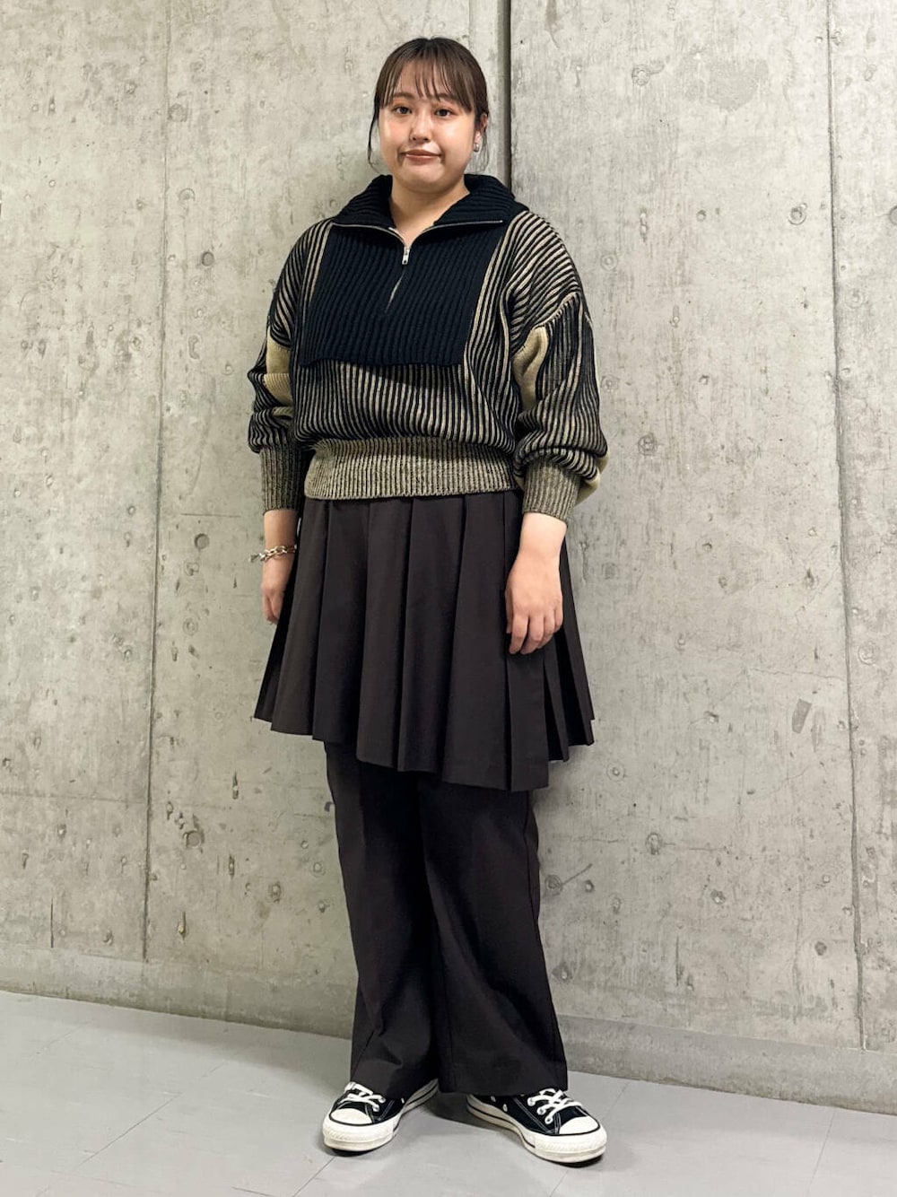 ゆるっと着られるサイズ感で、ファスナーを開けて首元を折るとすっきり着ることも出来て◎