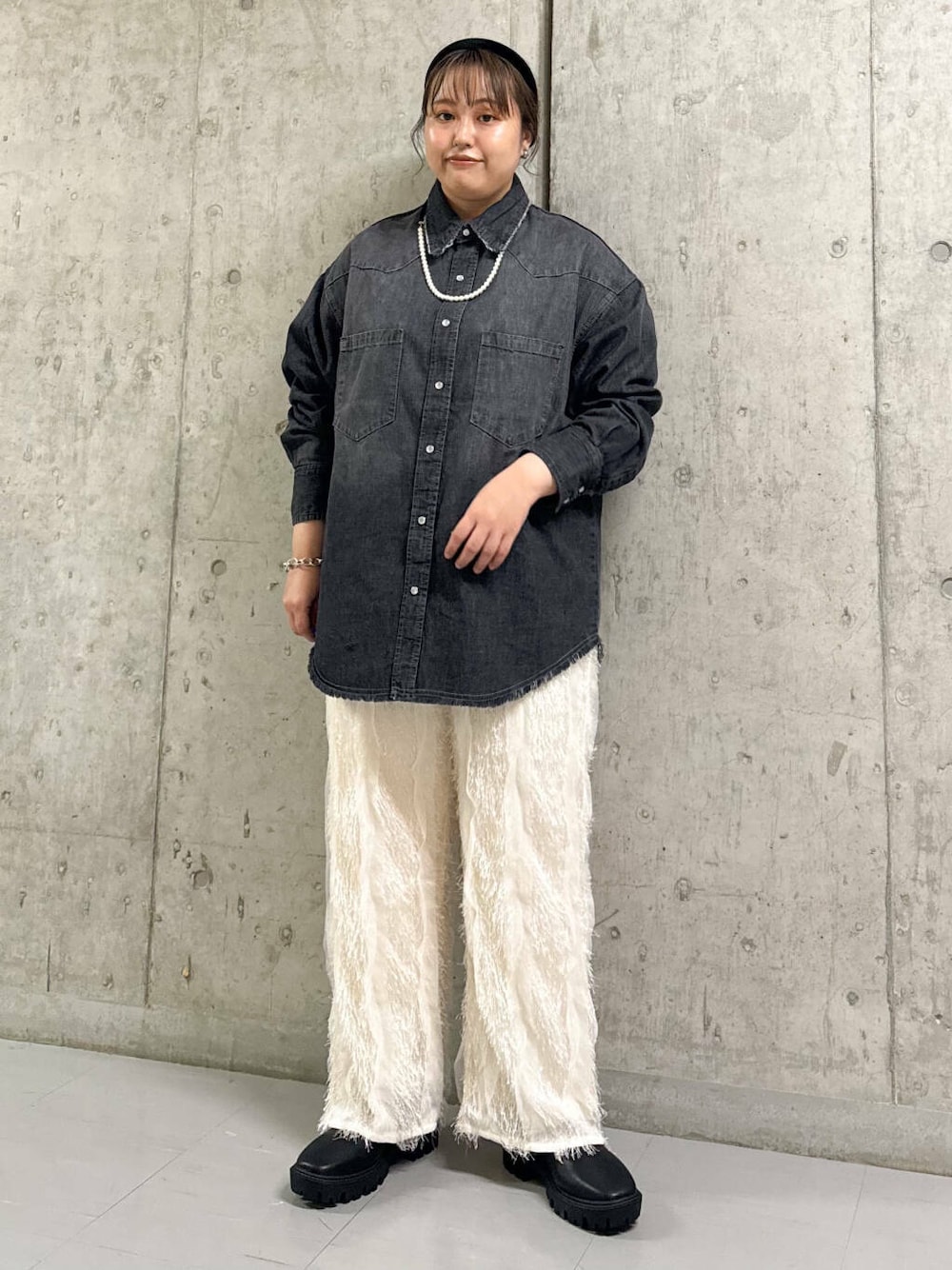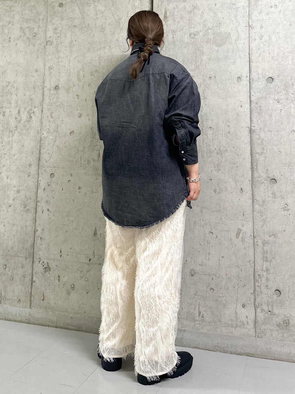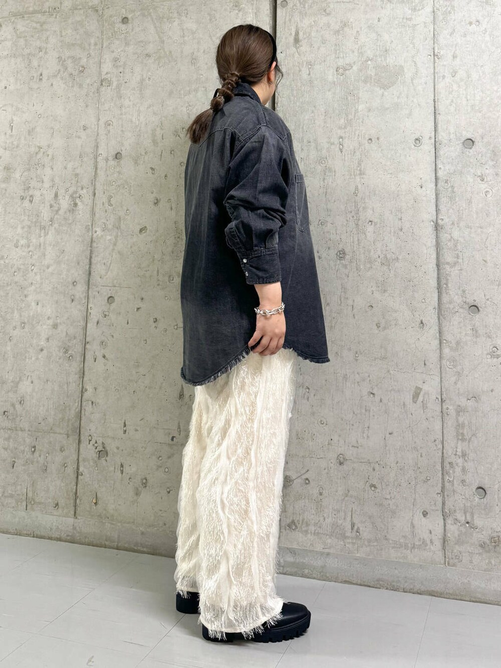 デニムシャツはオーバーサイズでゆったり着られて◎