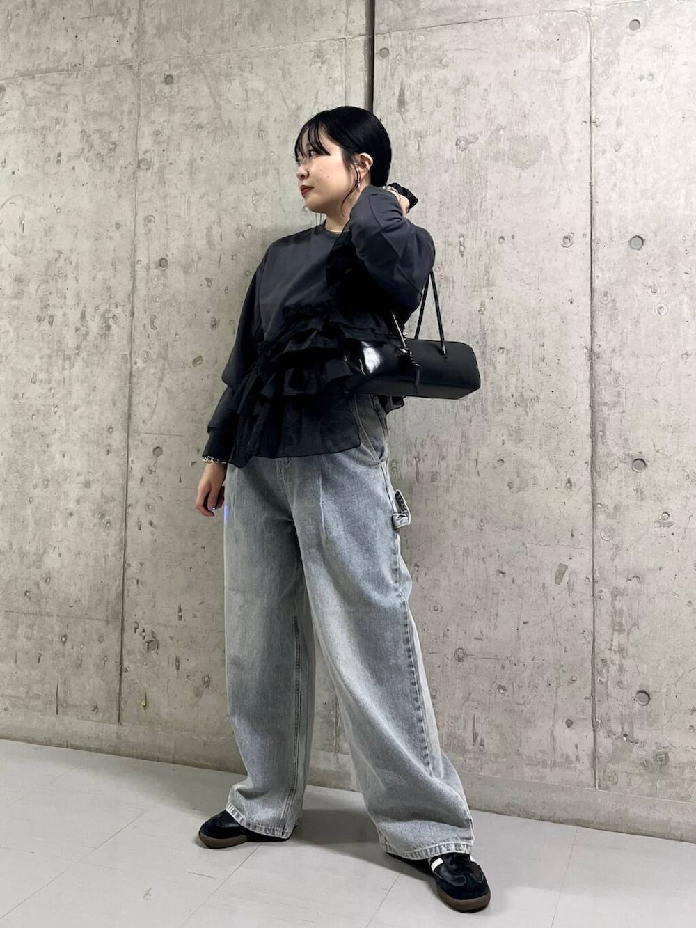 アウターからちらっと見えるフリルが可愛いですよー◎