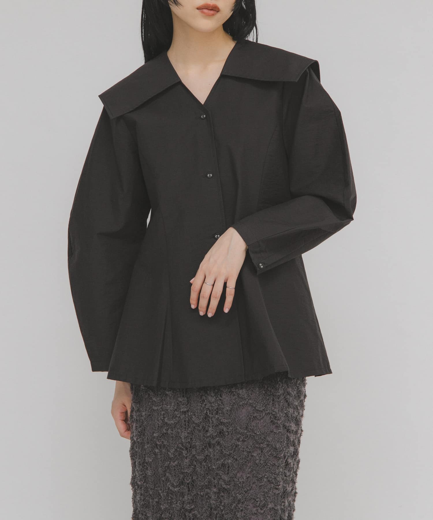 トップスはブラックですが、黒すぎないお色味なので重くなり過ぎず着ていただけます!寒くなったらニットやスウェットの下に入れて襟だけ出すこともできる、ながーく着ていただけるアイテムです!