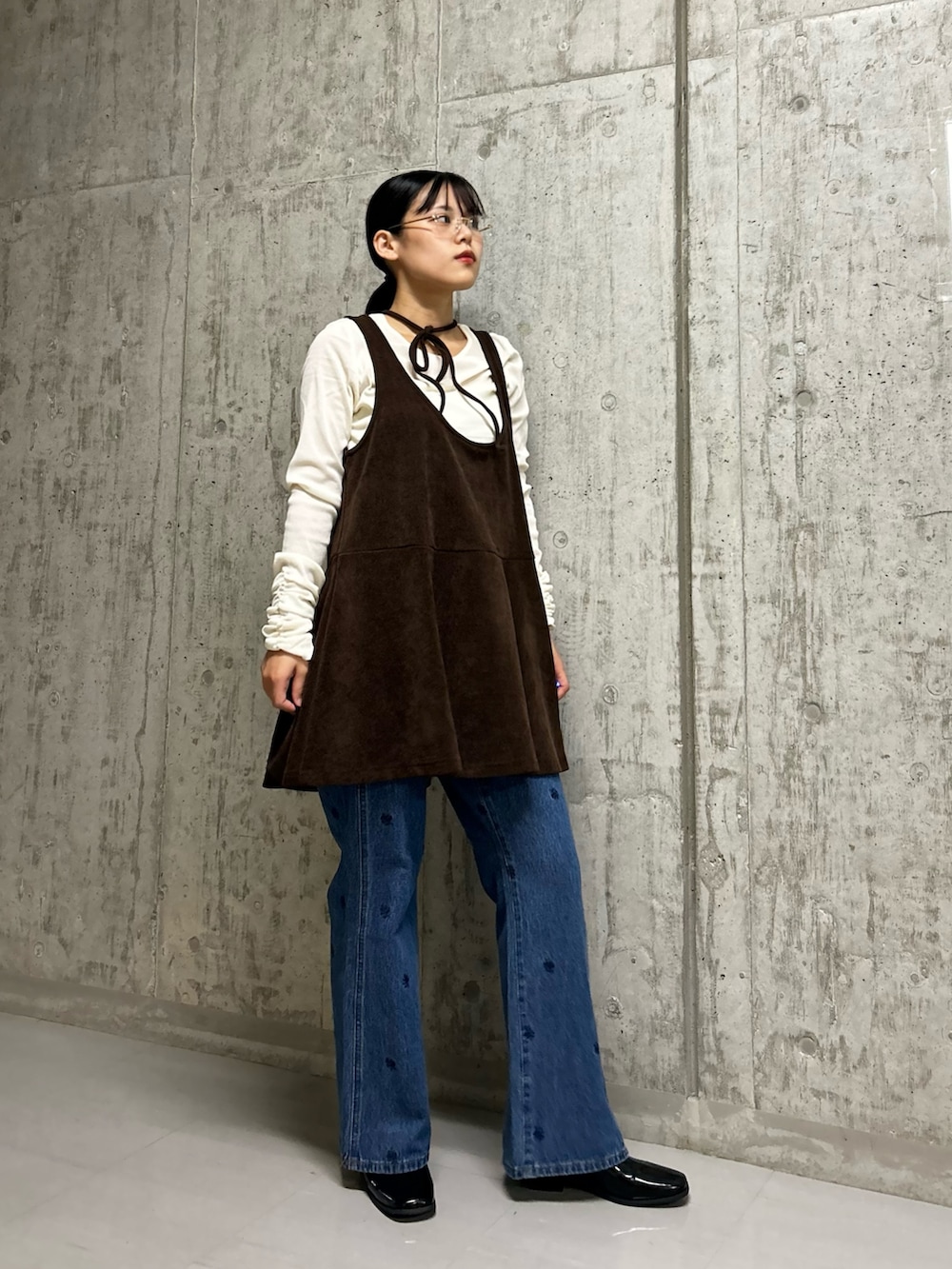小物で秋冬感をさらに出してみました!リムレスメガネは一気にコーデが大人見えするので持っておいて損なしです👓✨️