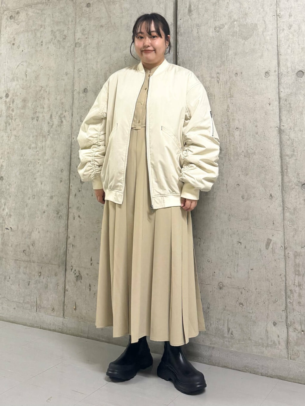 アウターはギャザースリーブが可愛く、とっても軽くて着やすくておすすめです!