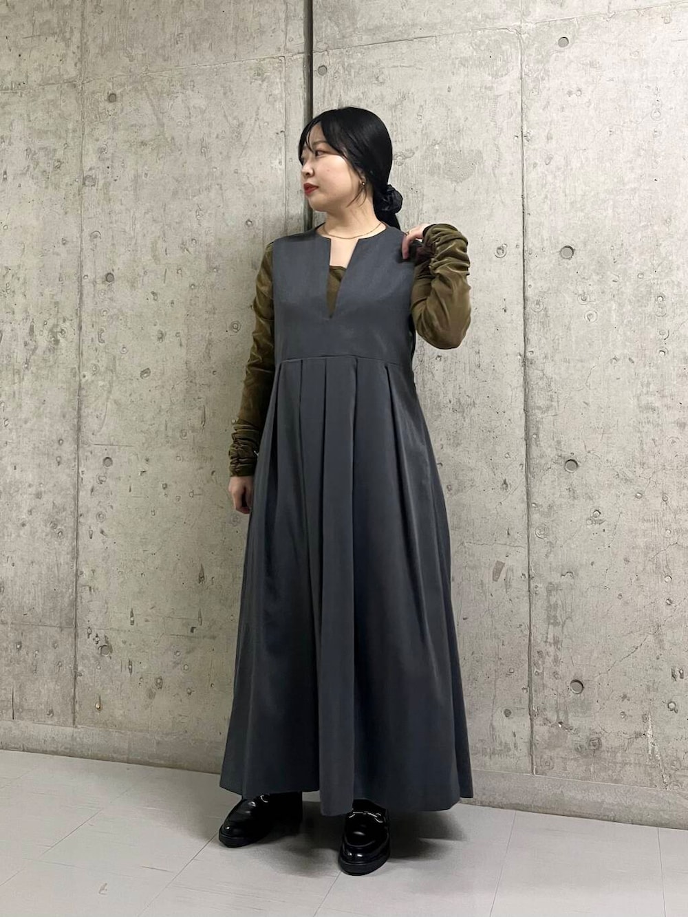 『2サイズ展開』キーネックBIGプリーツジャンパースカート