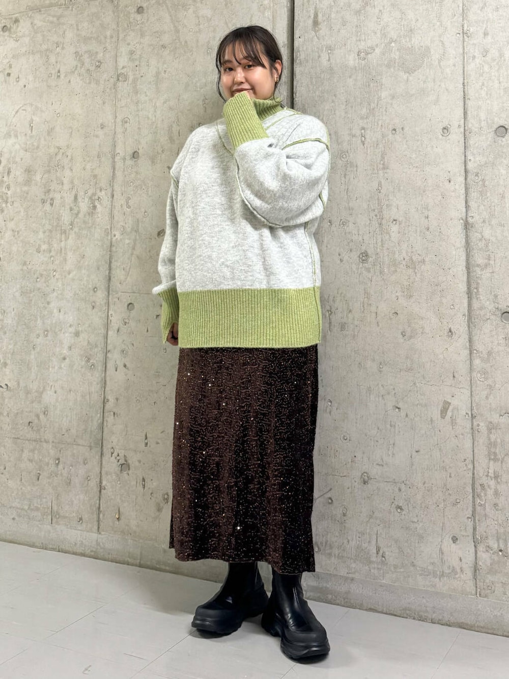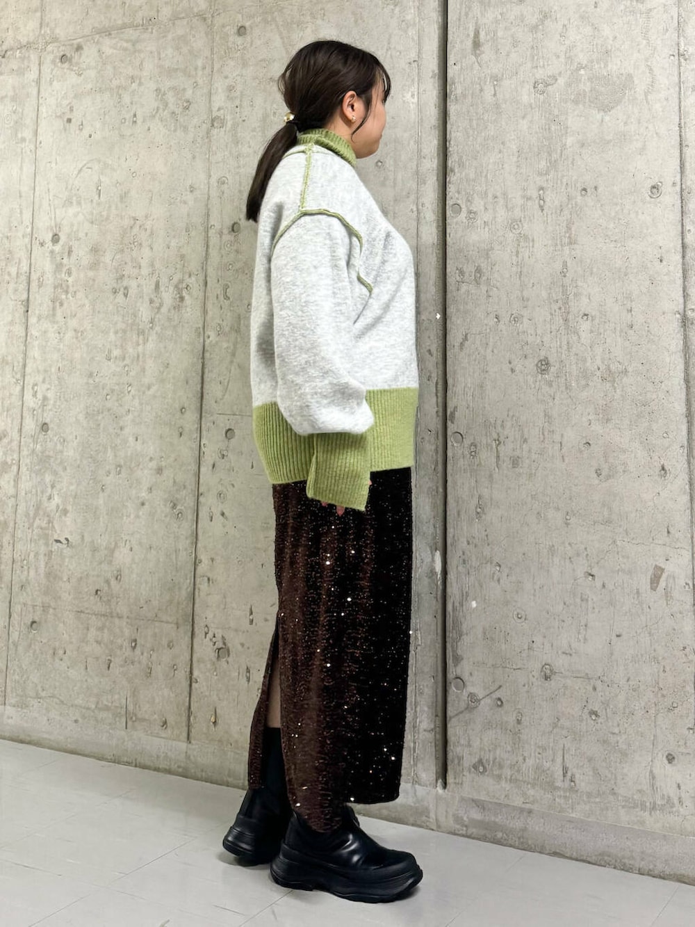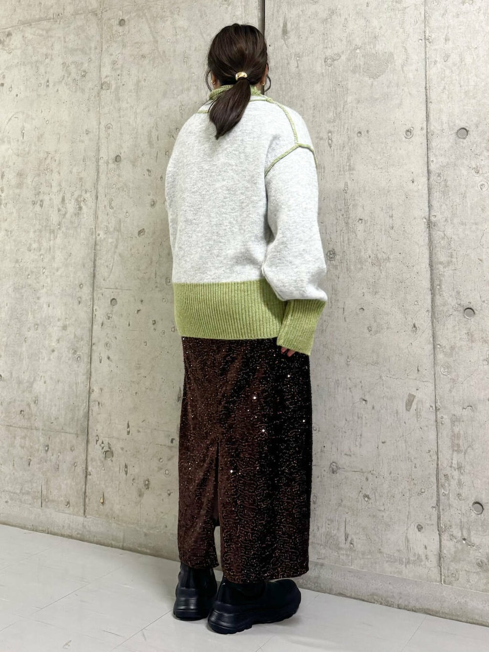 スカートはスパンコールがコーデを華やかにしてくれ、ウエストもゴムなので穿きやすいです!