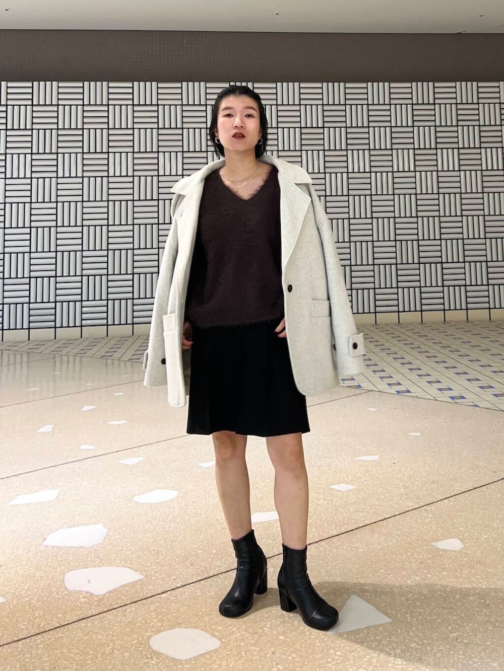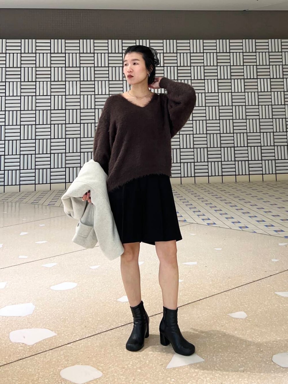 ヒールブーツとシュシュで大人な印象にしました^^