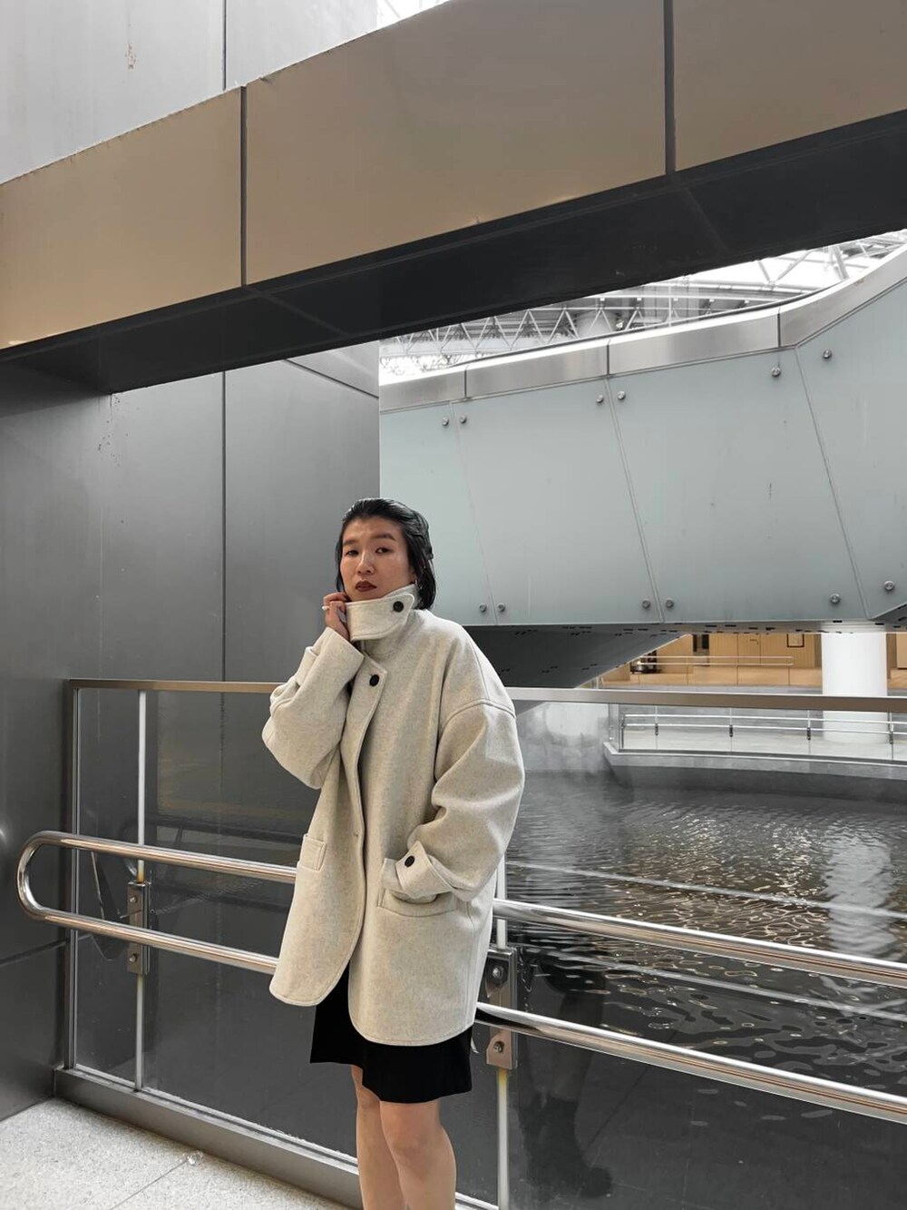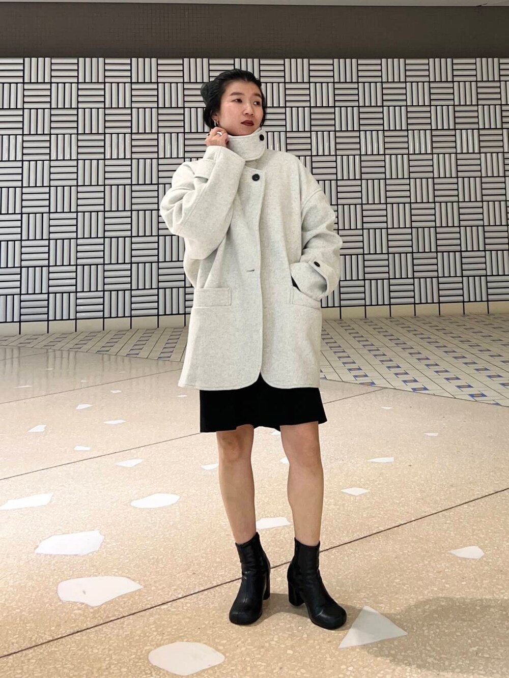 ポイント!スタンドカラーにもできるのでマフラーいらずで