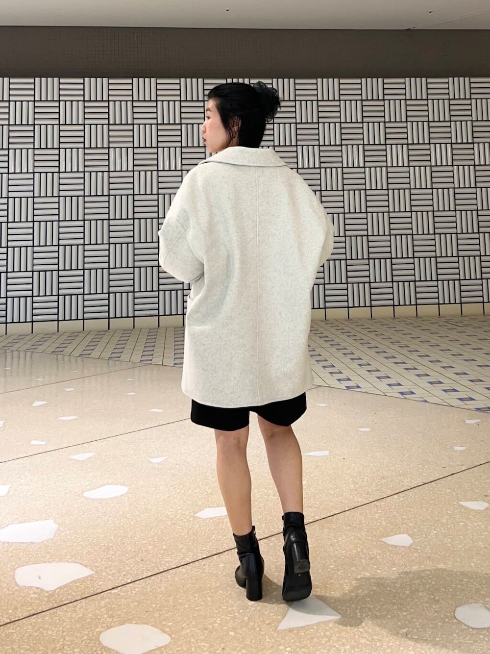 ショートパンツでスッキリした雰囲気にしながら、