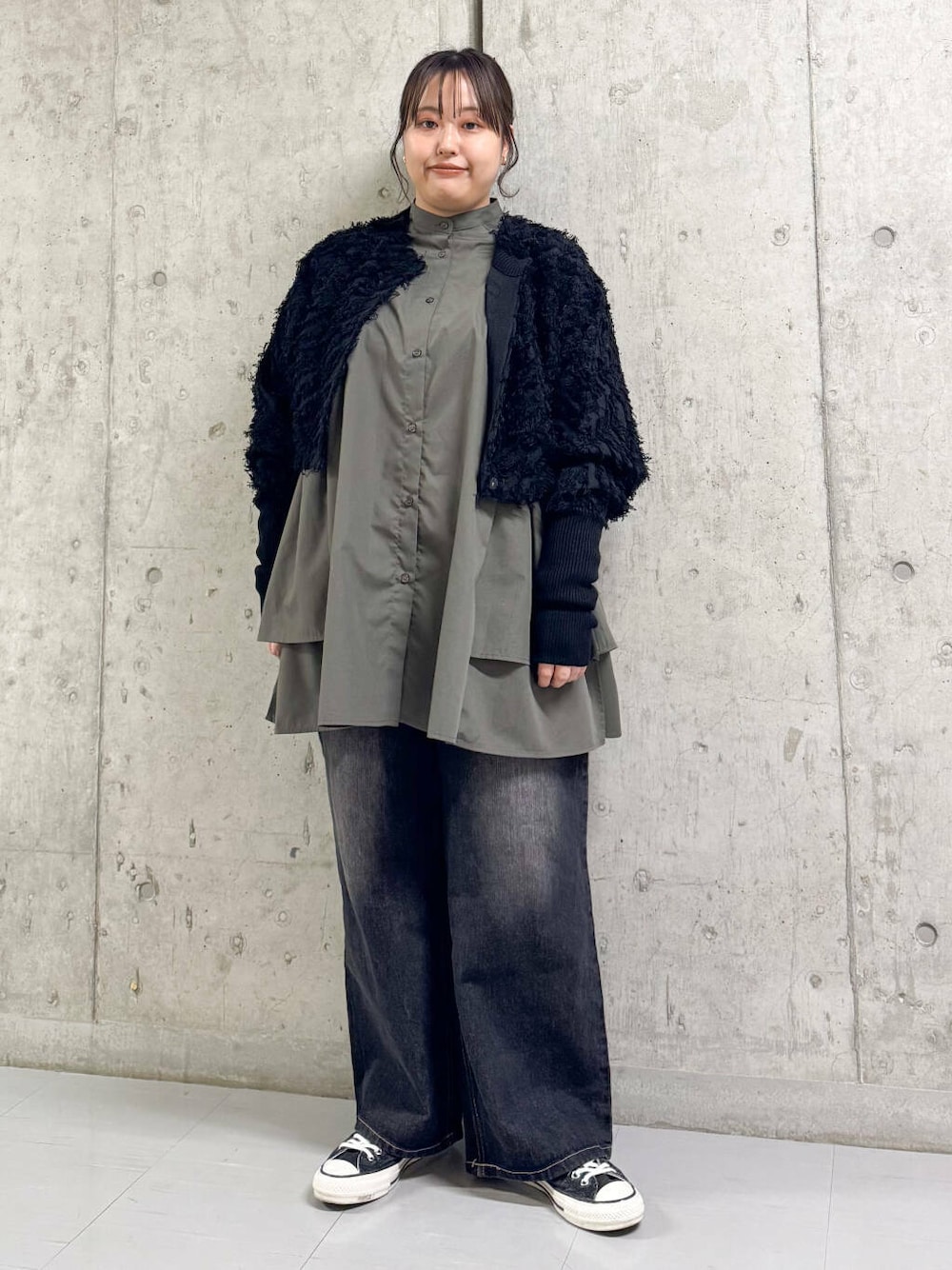 フリンジカーディガンは、ショート丈なのでコーデのバランスがとりやすく、お袖も中に着込めるくらいゆったりしています!