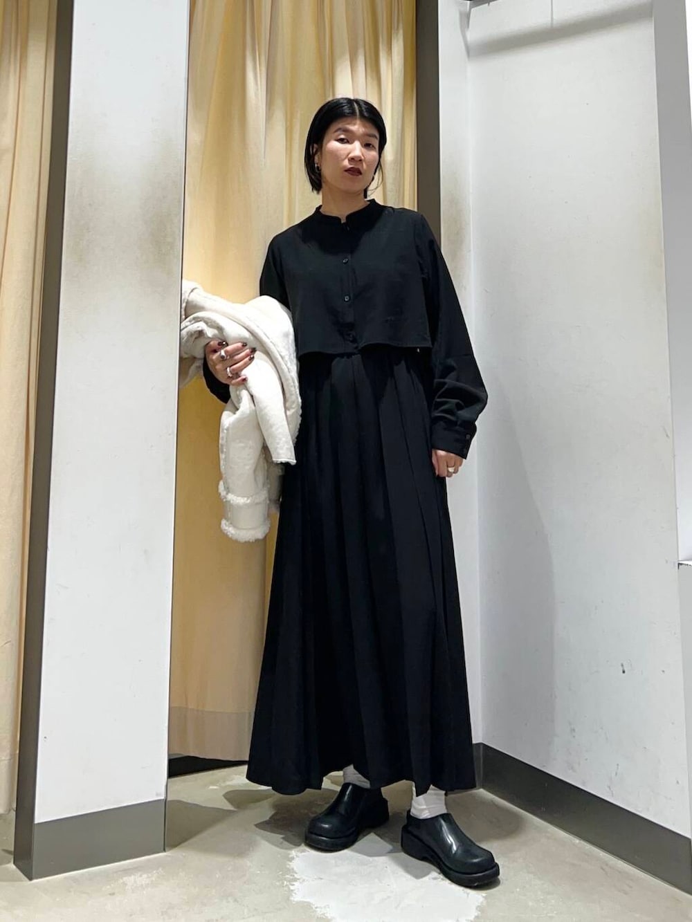 ワンピースはウエストが絞れるので、ダボっとした雰囲気に