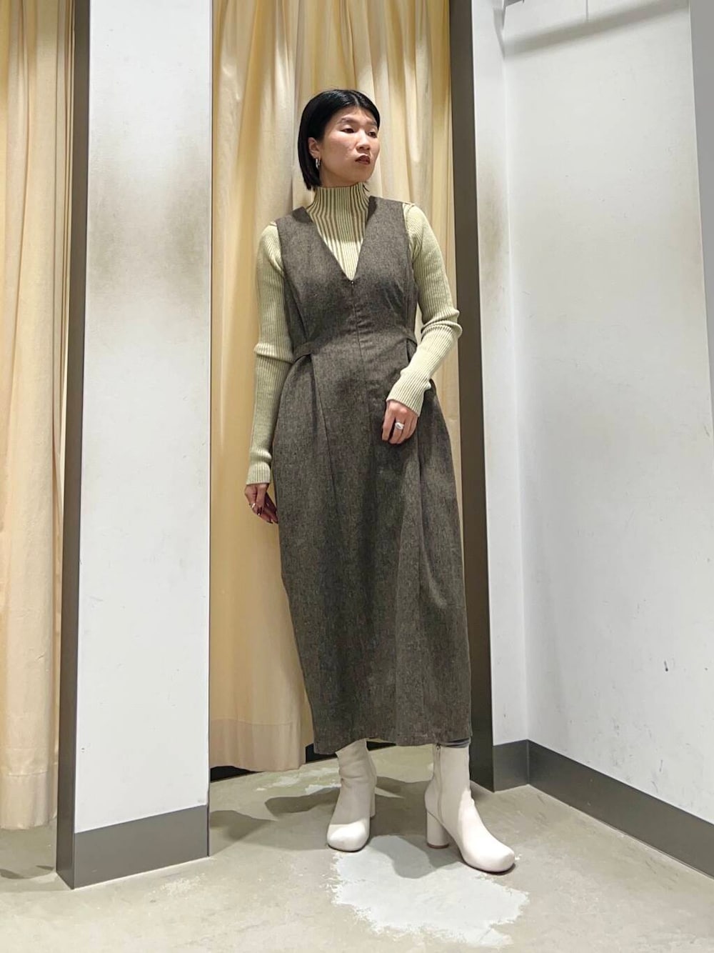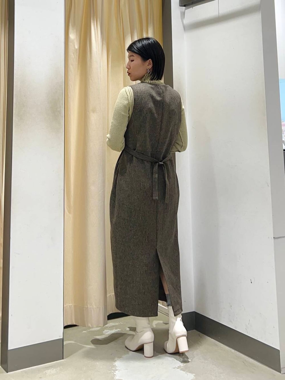 ストンと落ちるシルエットですが、ウエストをベルトで