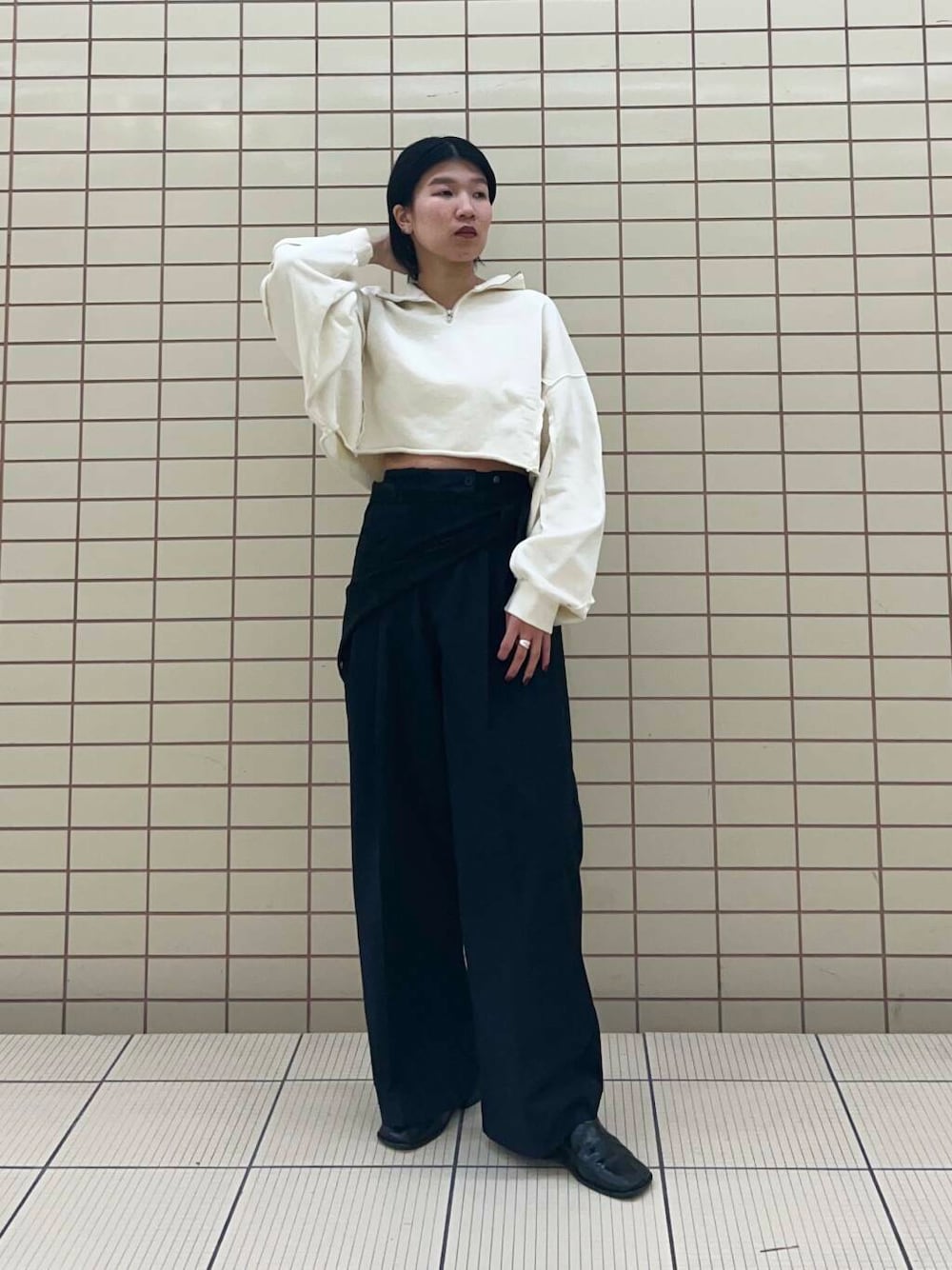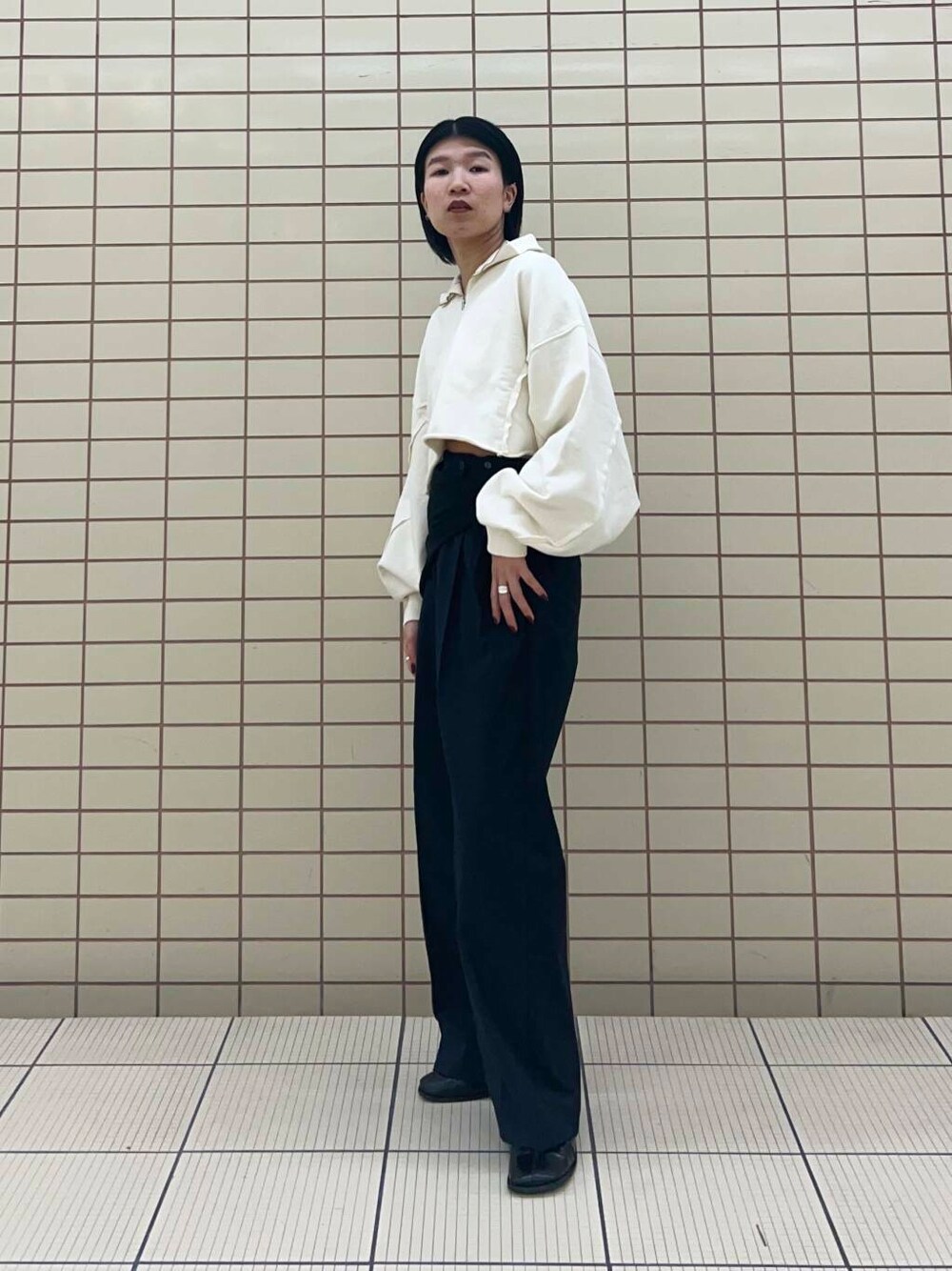 パンツはストレートのスラックスで形がすごく綺麗です!