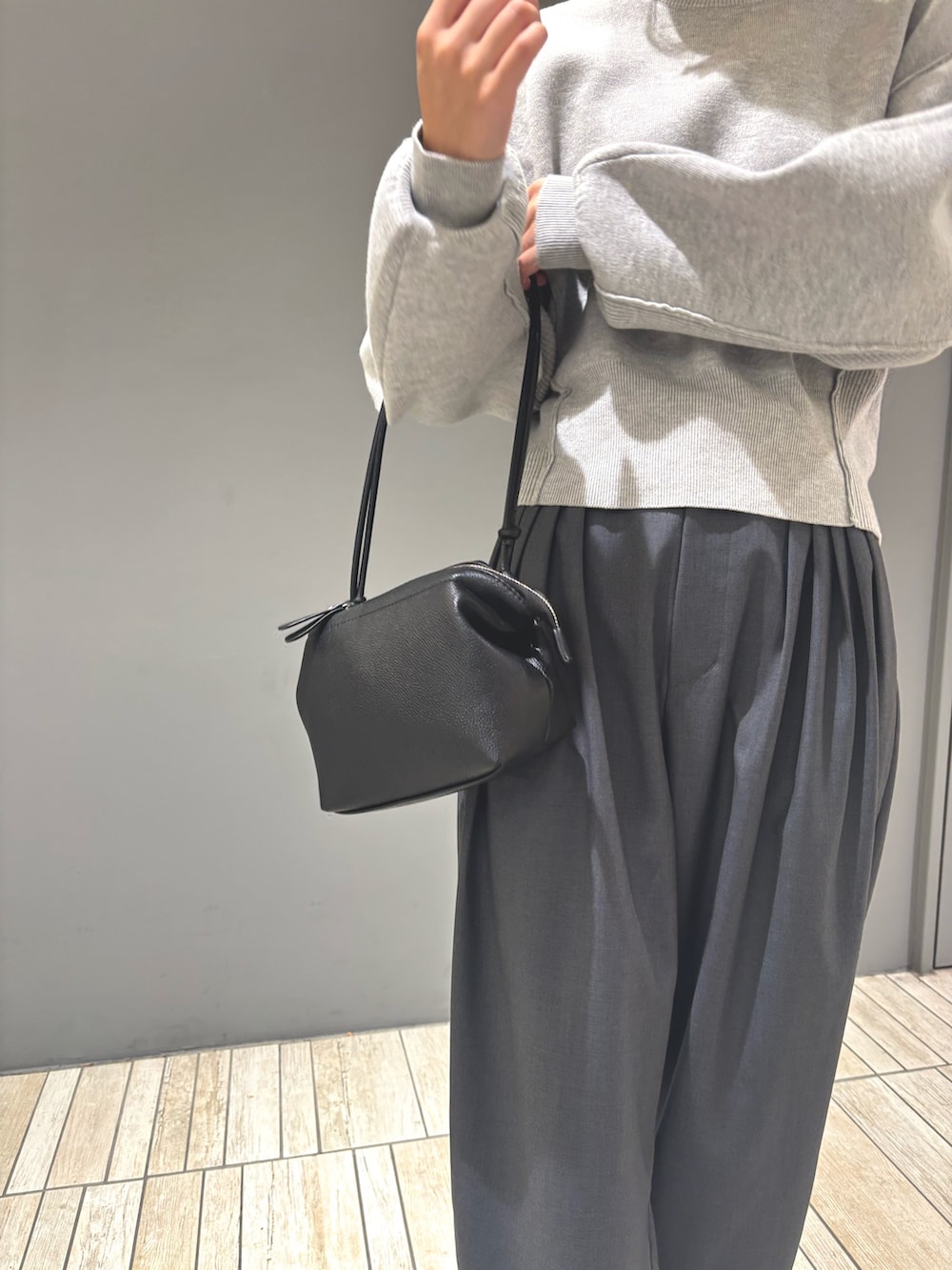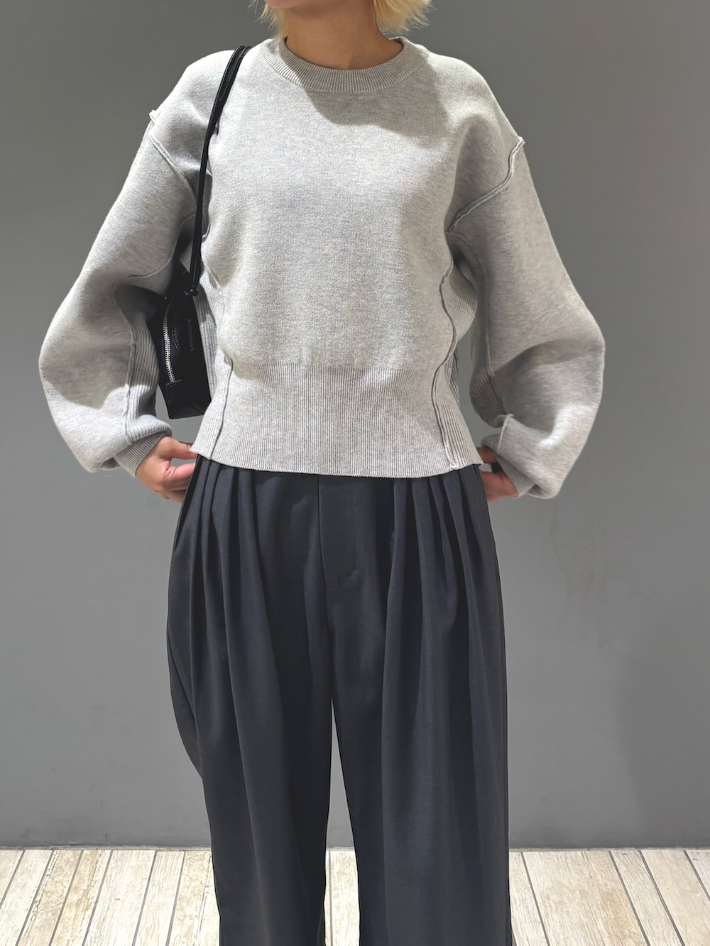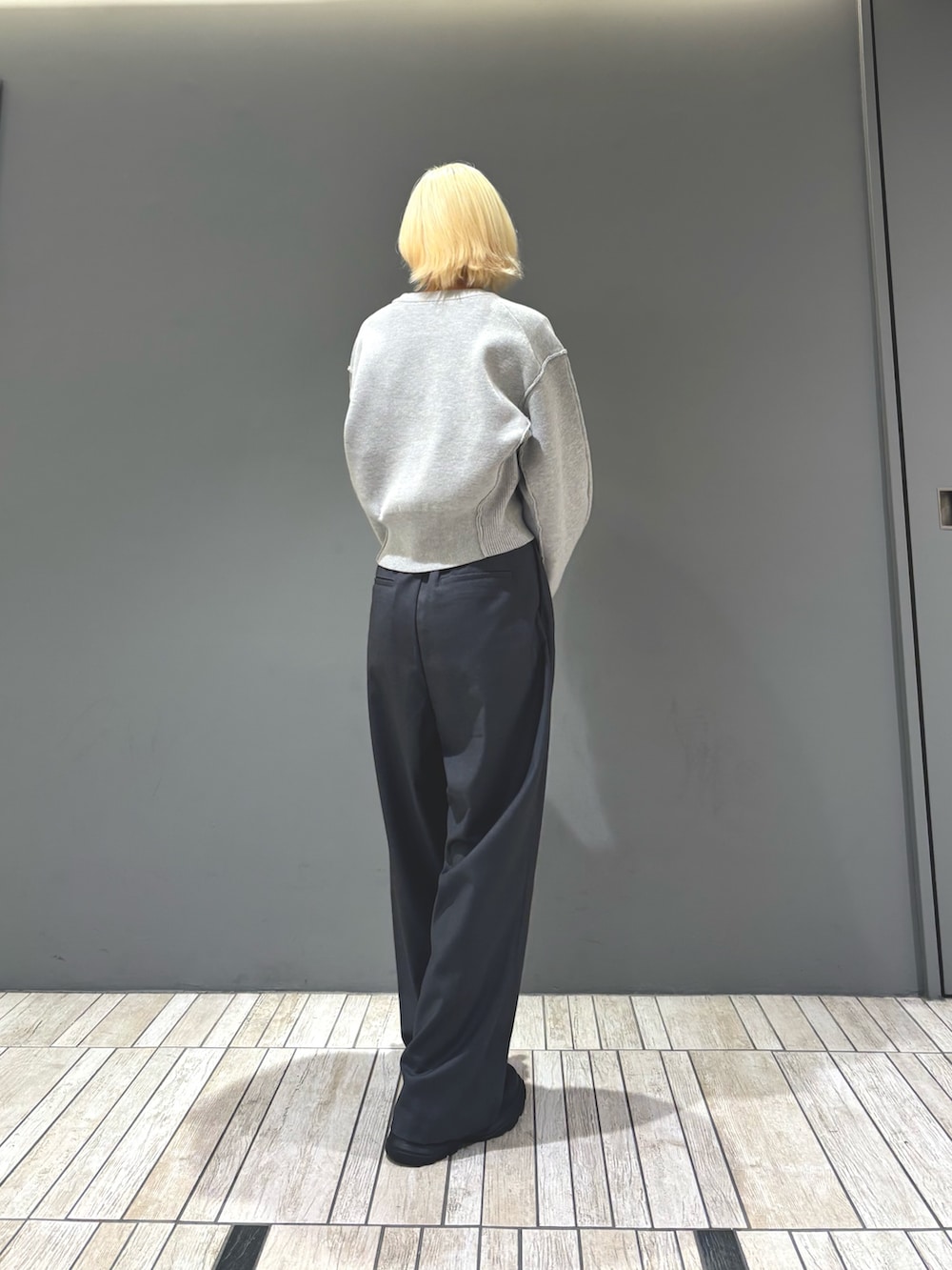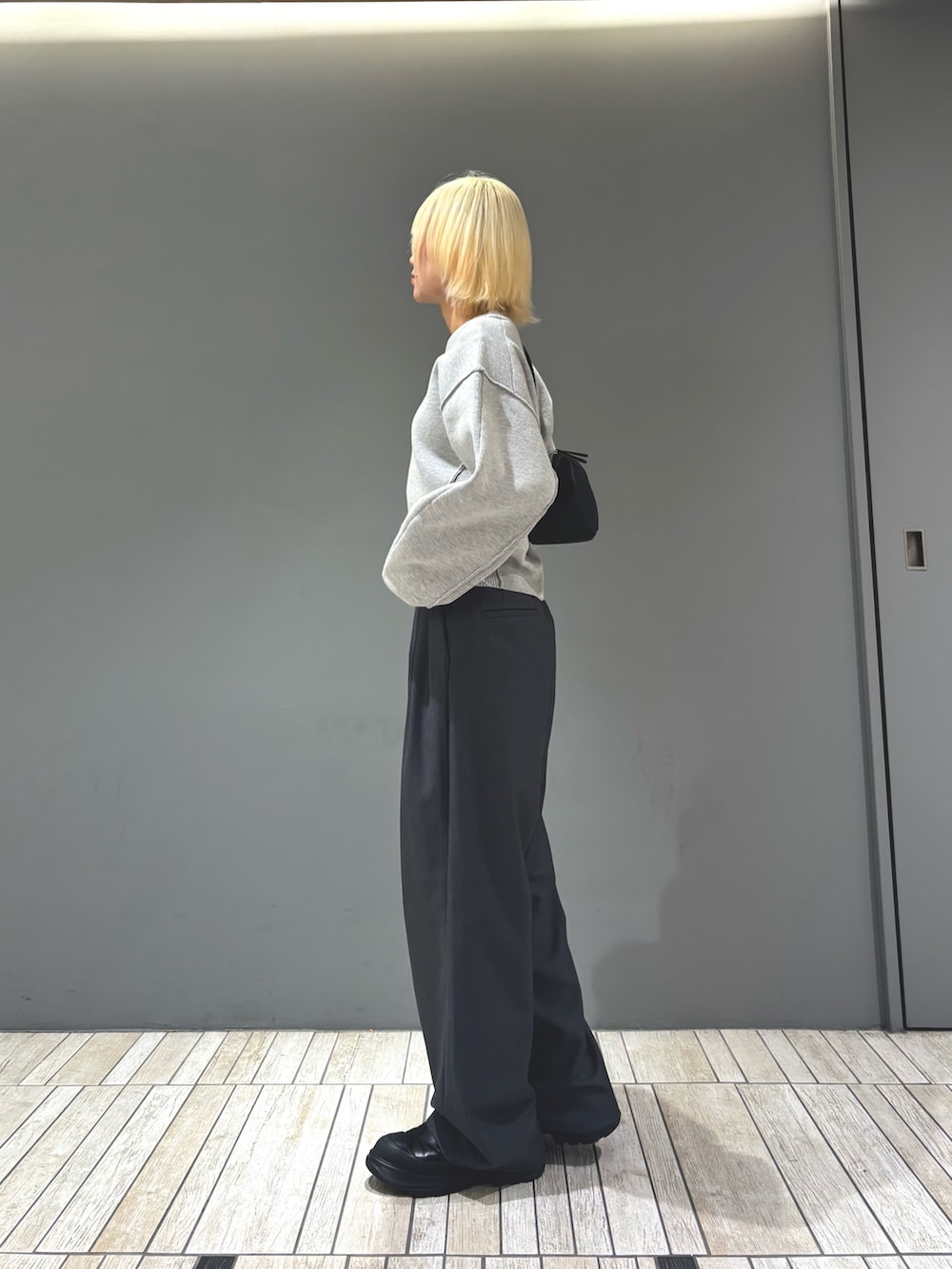 全体的にシンプルに見えますが、立体感があるスウェットやタックがたくさん入ったスラックスを合わせることによって一癖あり、おしゃれ見えします!